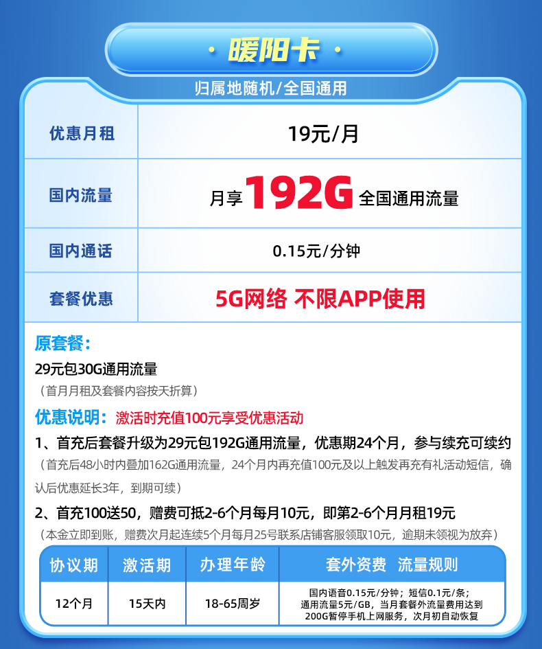 【长期流量卡】月月享192G纯通用流量!支持5G!仅发广西!暖阳卡 商品缩略图0