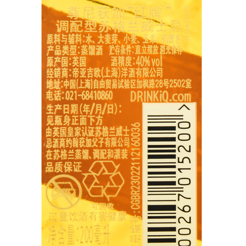 尊尼获加红牌调配型苏格兰威士忌_40%vol 200ml(新老包装随机发货)