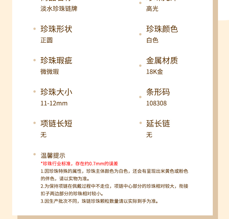 美裕 金18K淡水珍珠链牌11-12mm 108308W