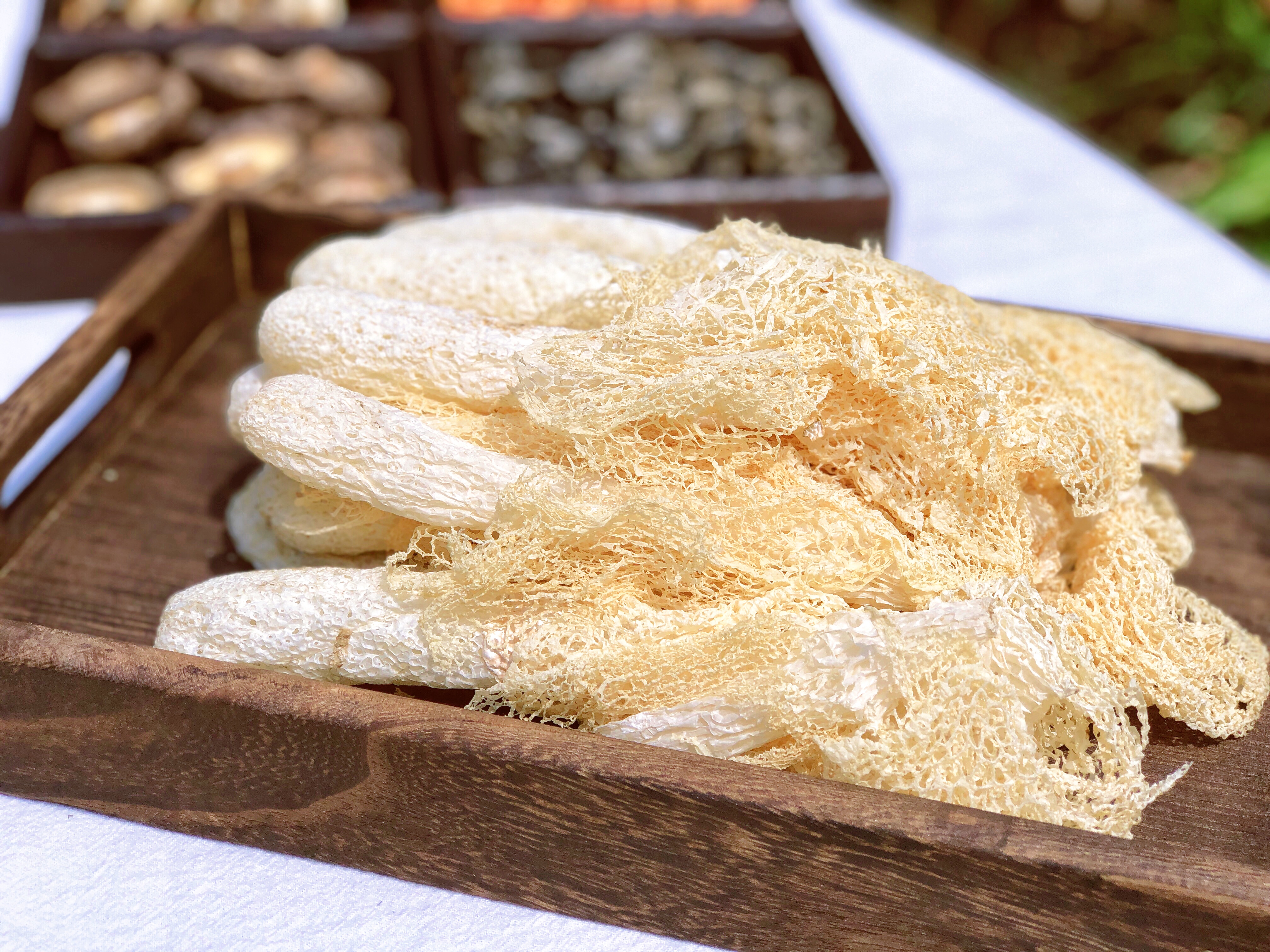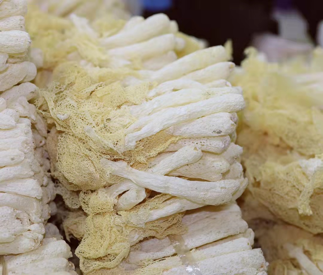 又名竹笙、竹参,是寄生在枯竹根部的一种隐花菌类,被人们称为“雪裙仙子”、“山珍之花”、“真菌之花”、“菌中皇后”。