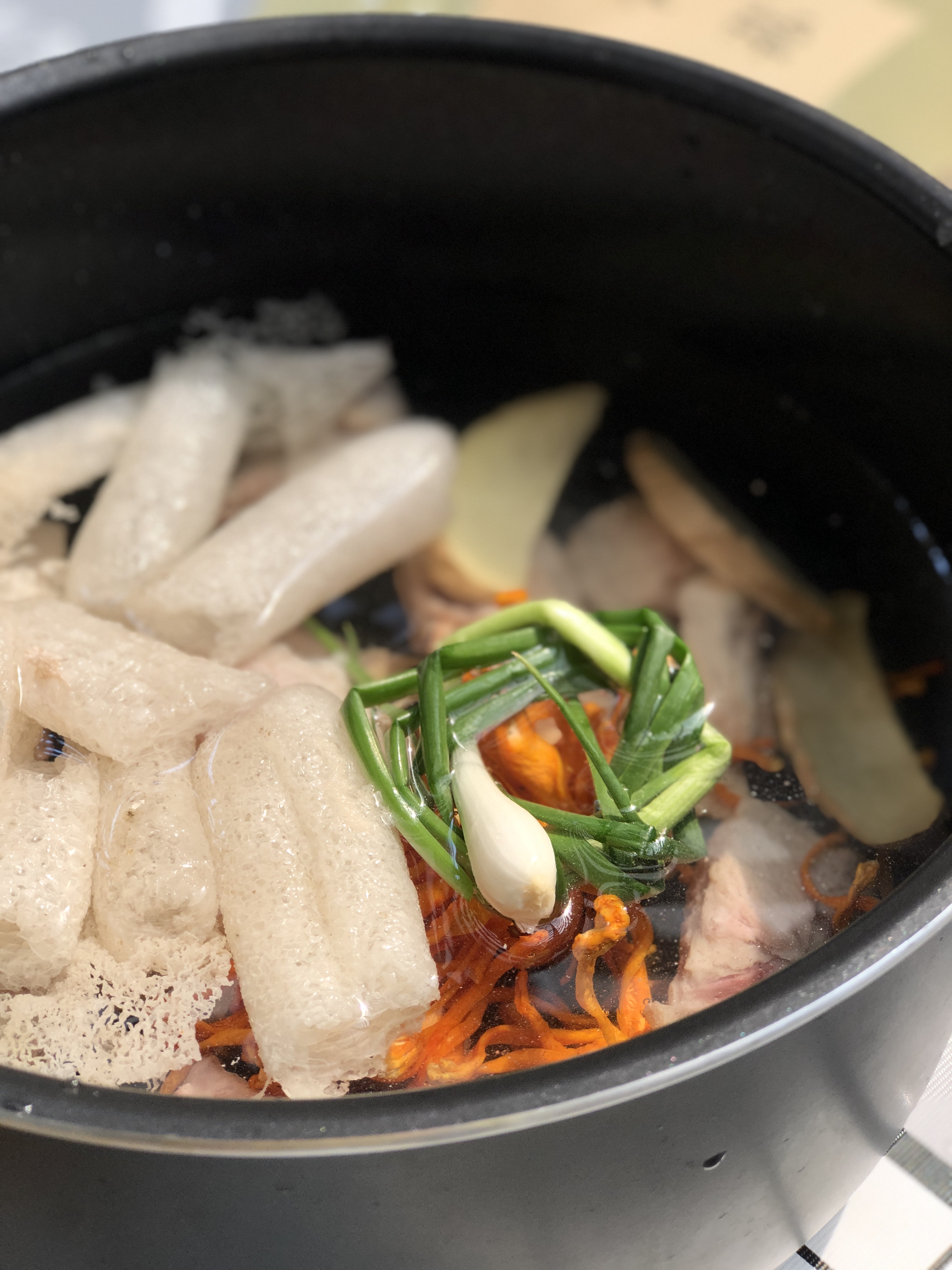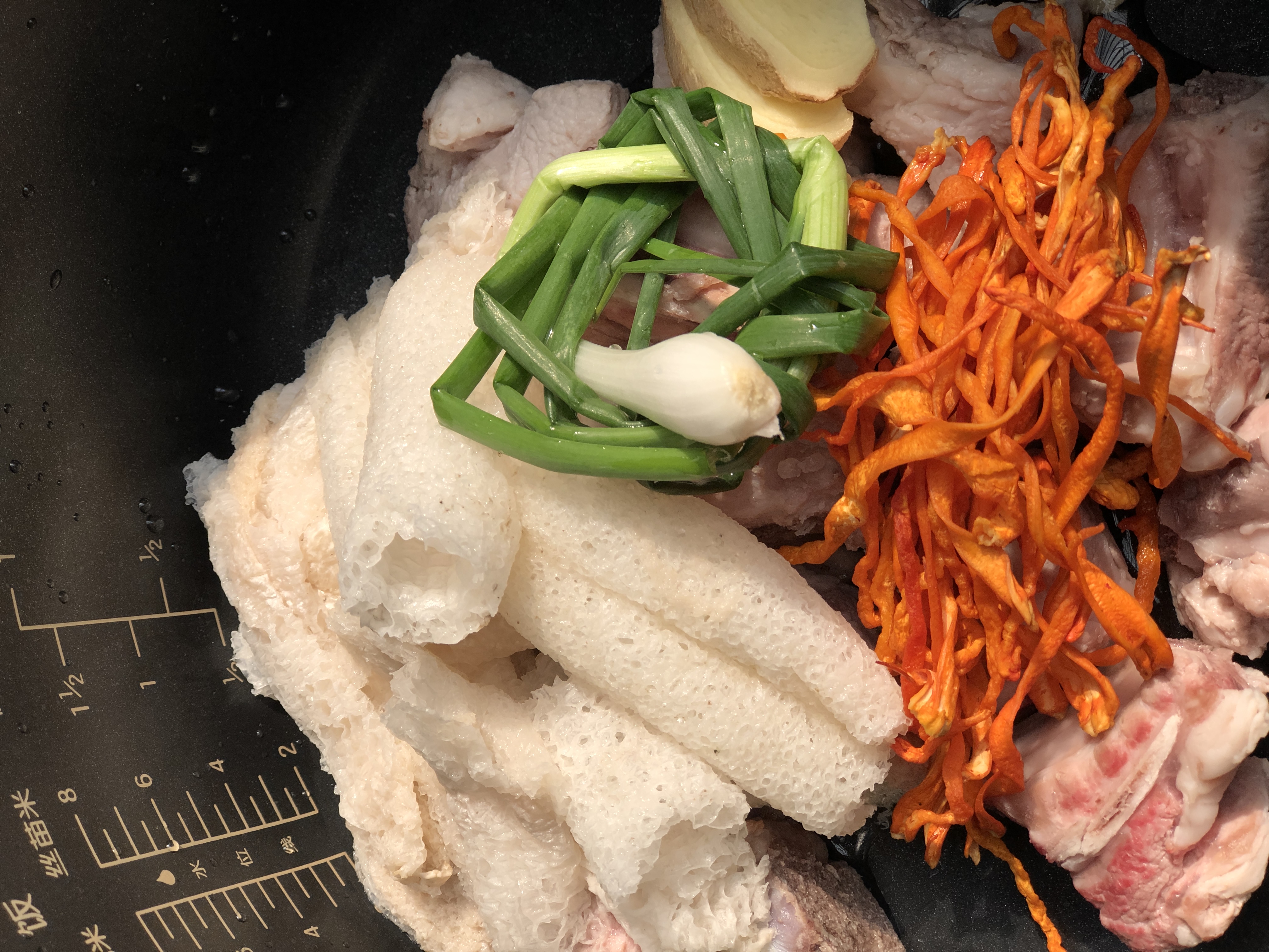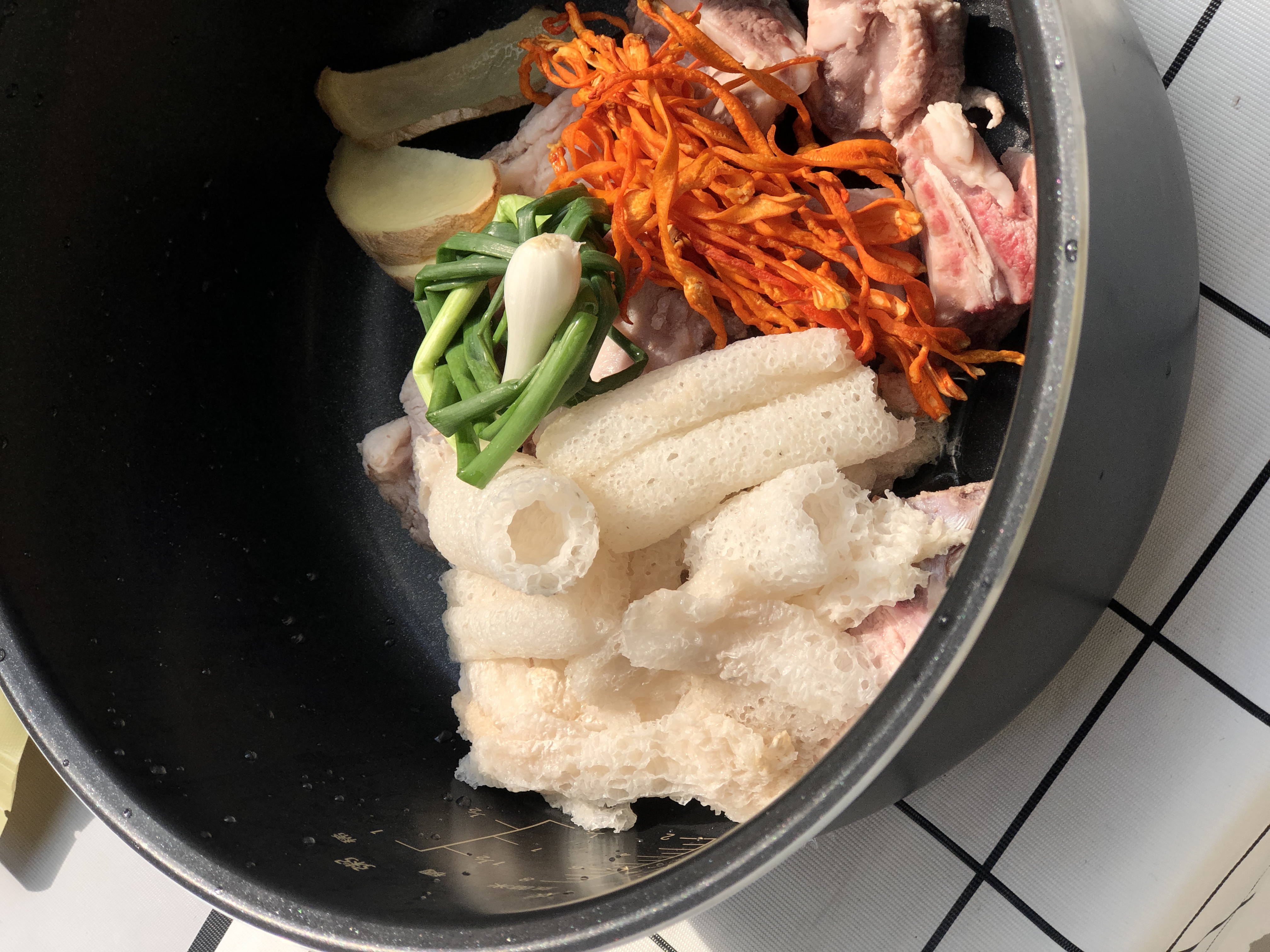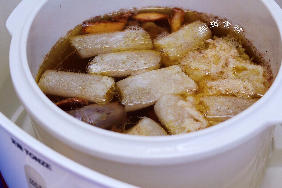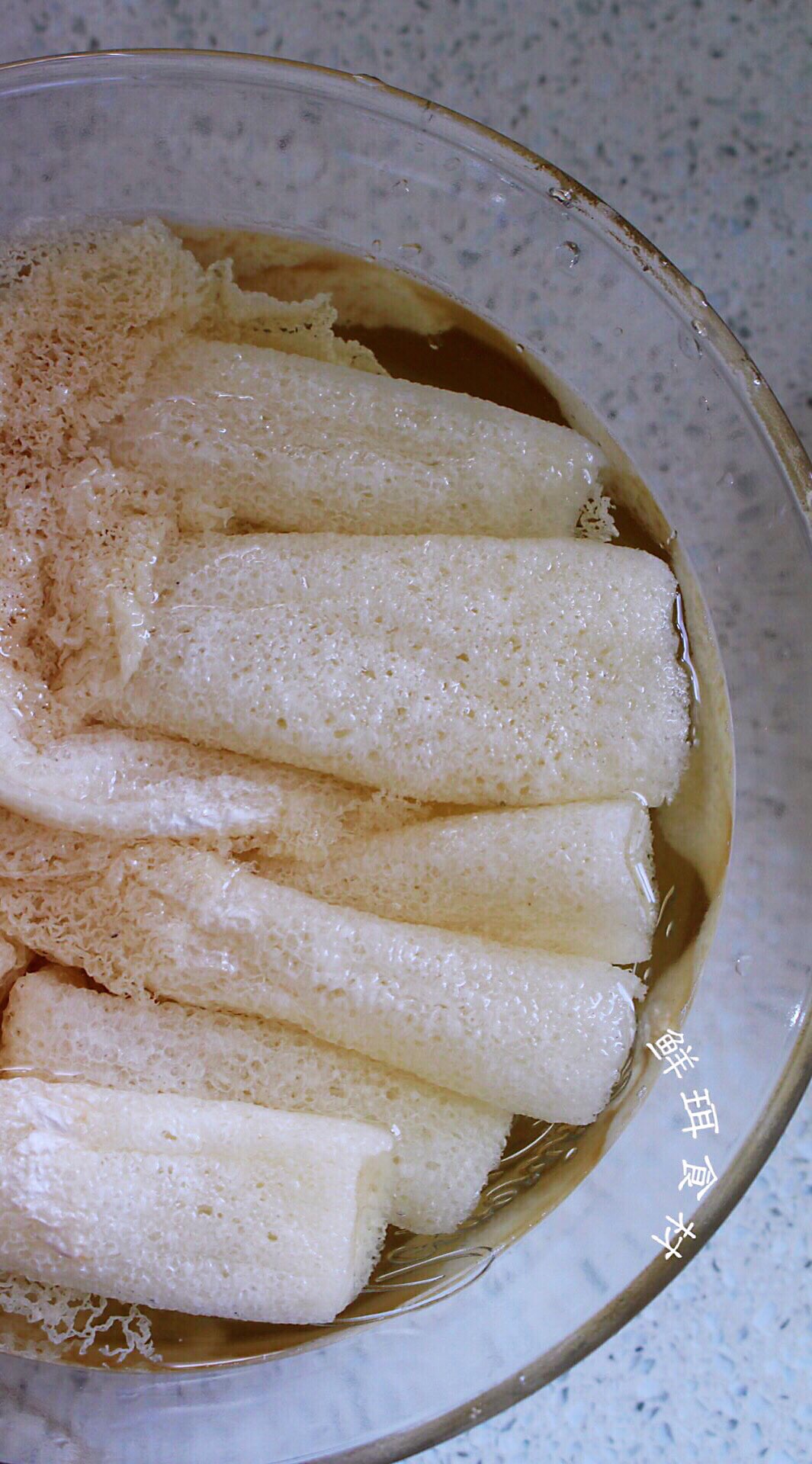 2、然后将干竹荪放水盐水中浸泡大约10分钟左右。