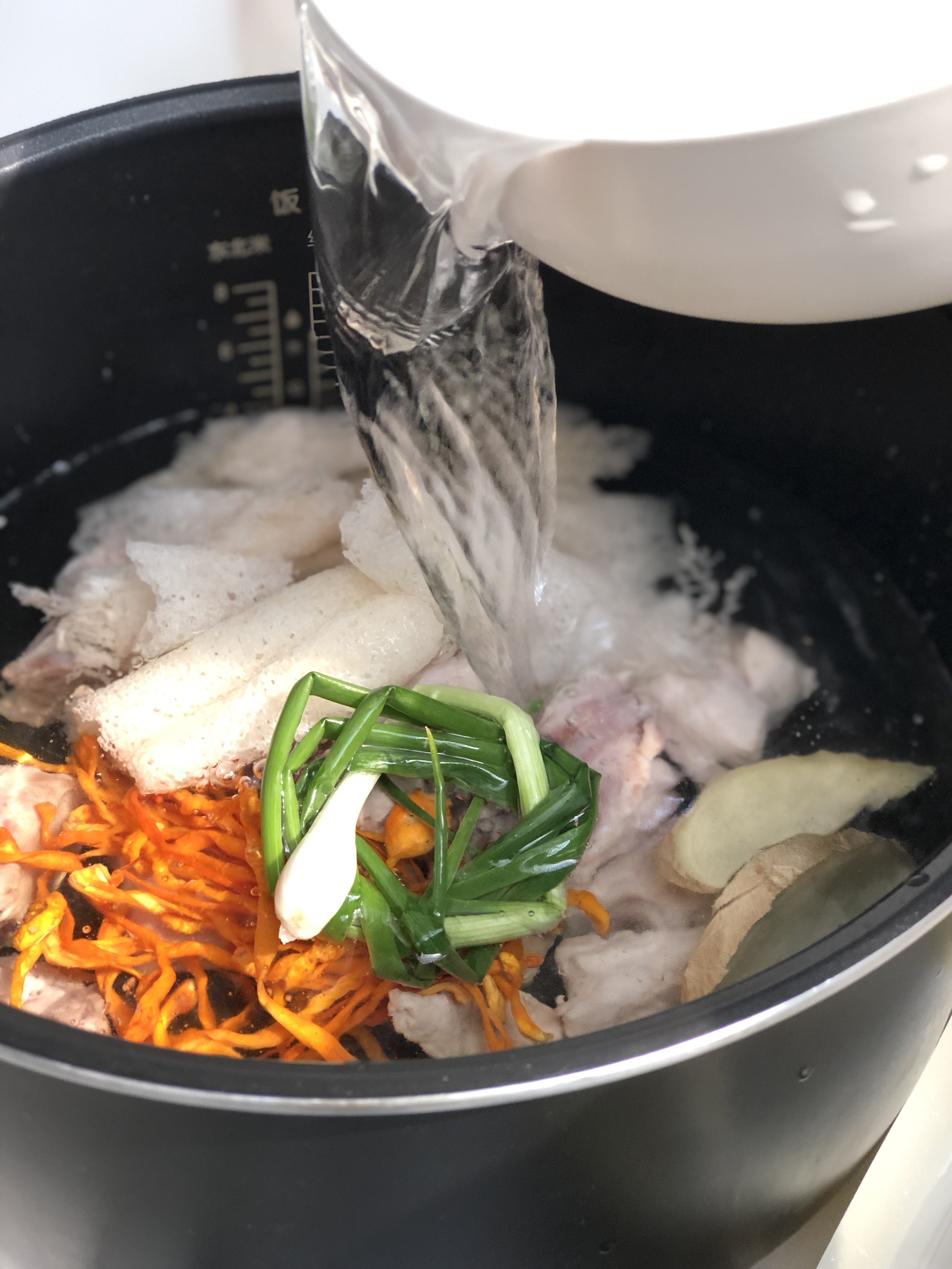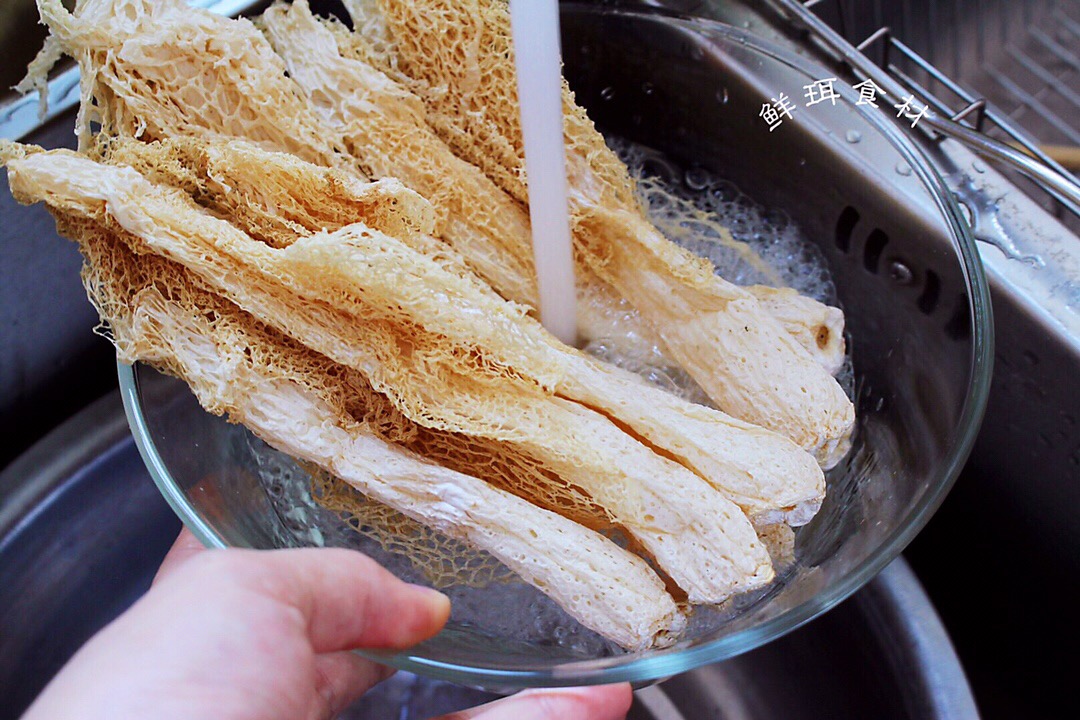 3、需要清水反复清洗残余的网状花冠和竹荪中的泥沙,直到干净。