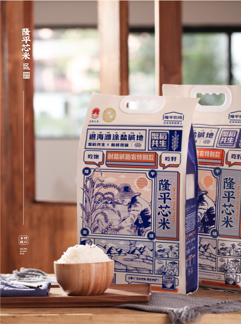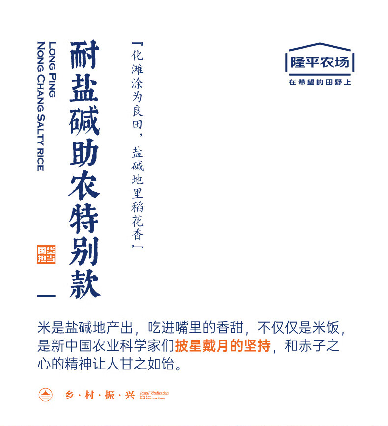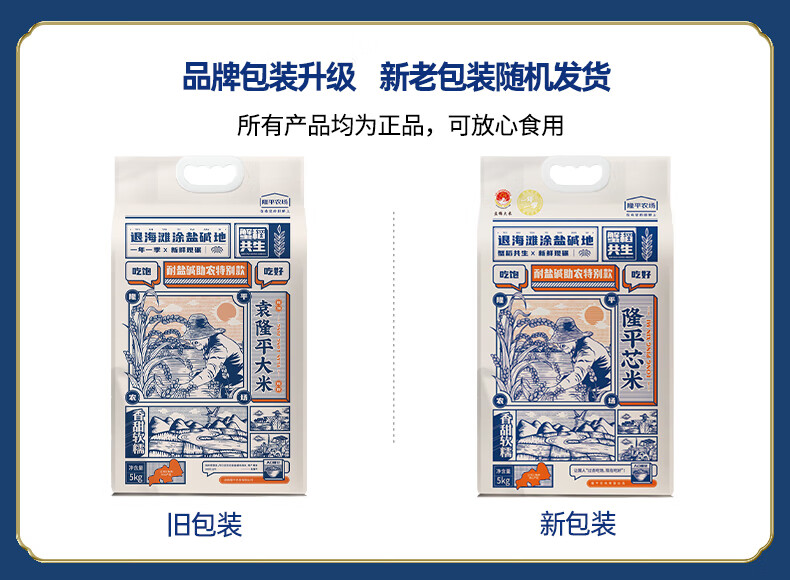 隆平芯米袁隆平大米 耐盐碱大米助农款5kg 圆粒香珍珠米 东北大米十斤