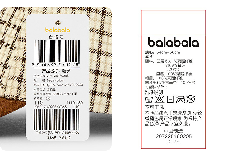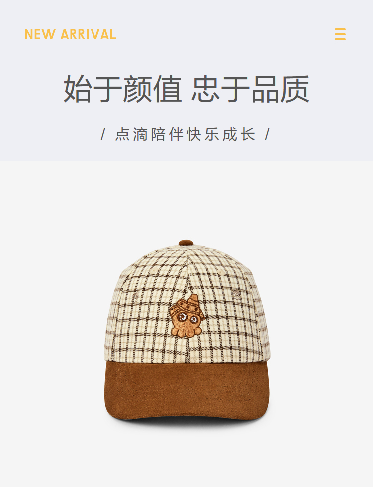 【商场同款】巴拉巴拉儿童帽子男女童棒球帽舒适格子图案时尚复古