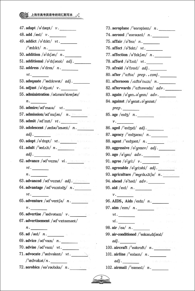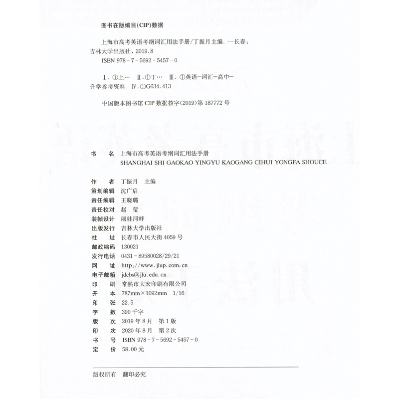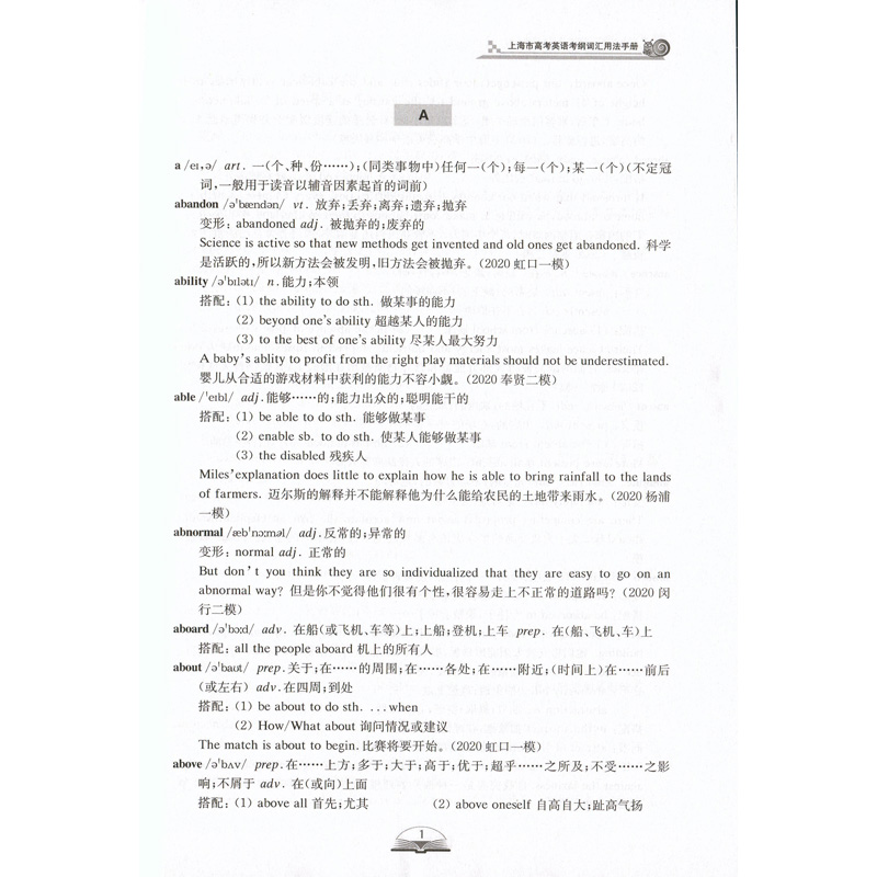 2021上海市高考英语考纲词汇用法手册+默写本 全2册 上海新题型高考英语词汇练习册 高中英语词汇基础能力训练 吉林大学出版社