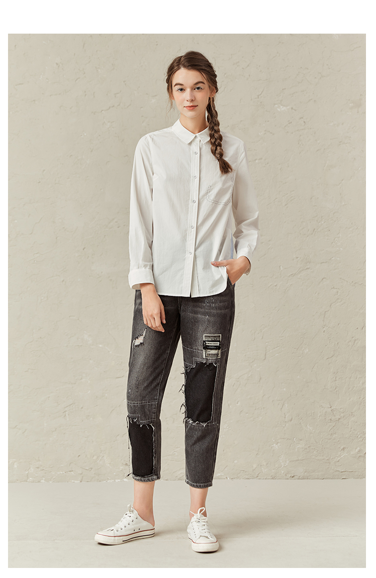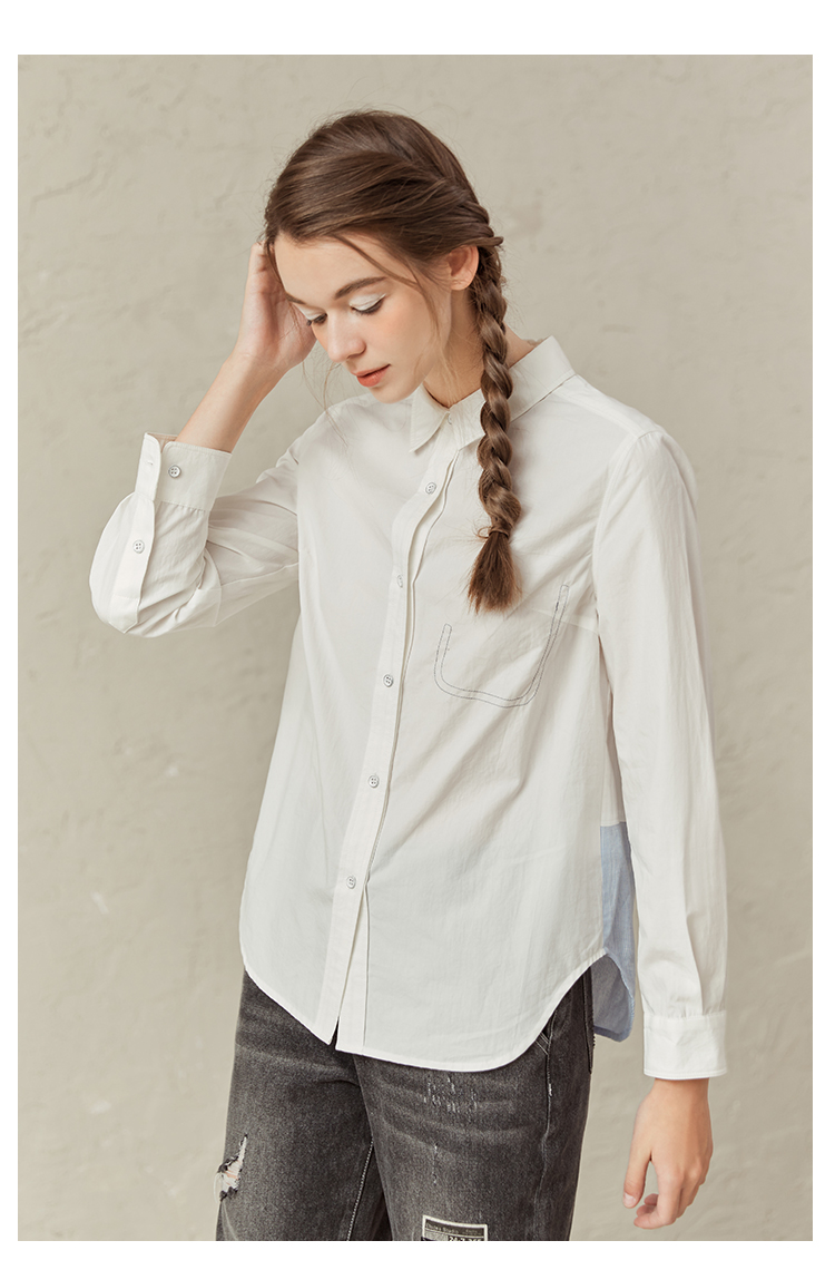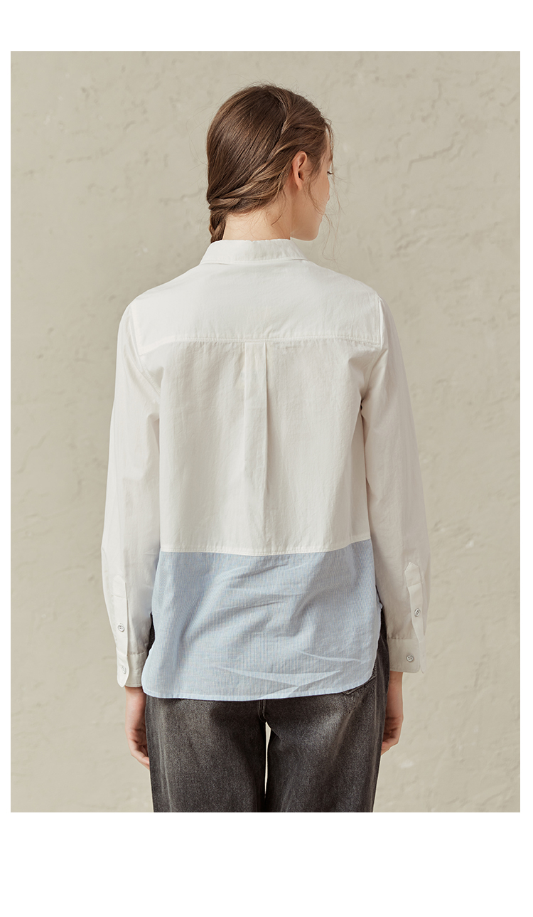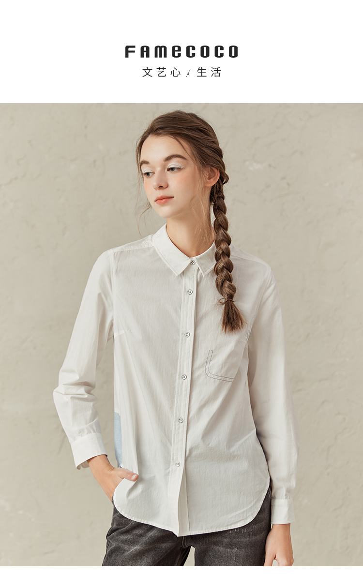Famecoco范可儿拼接条纹衬衫女早春小众别致上衣F221BA015