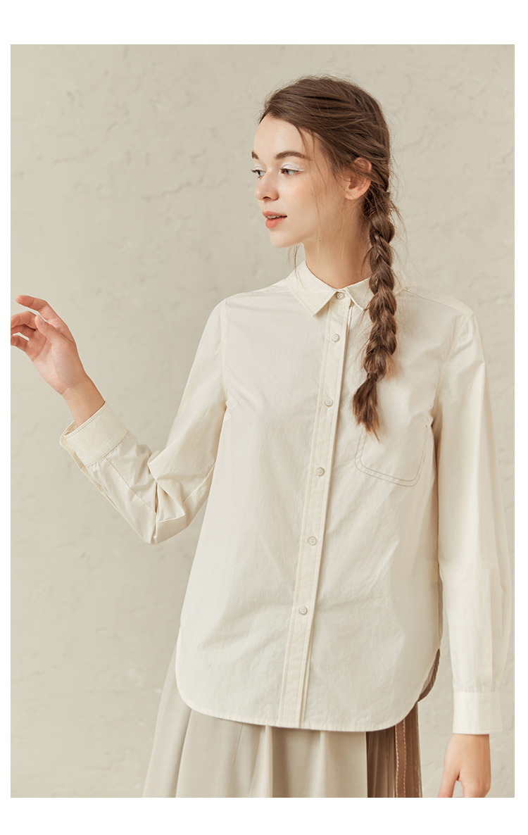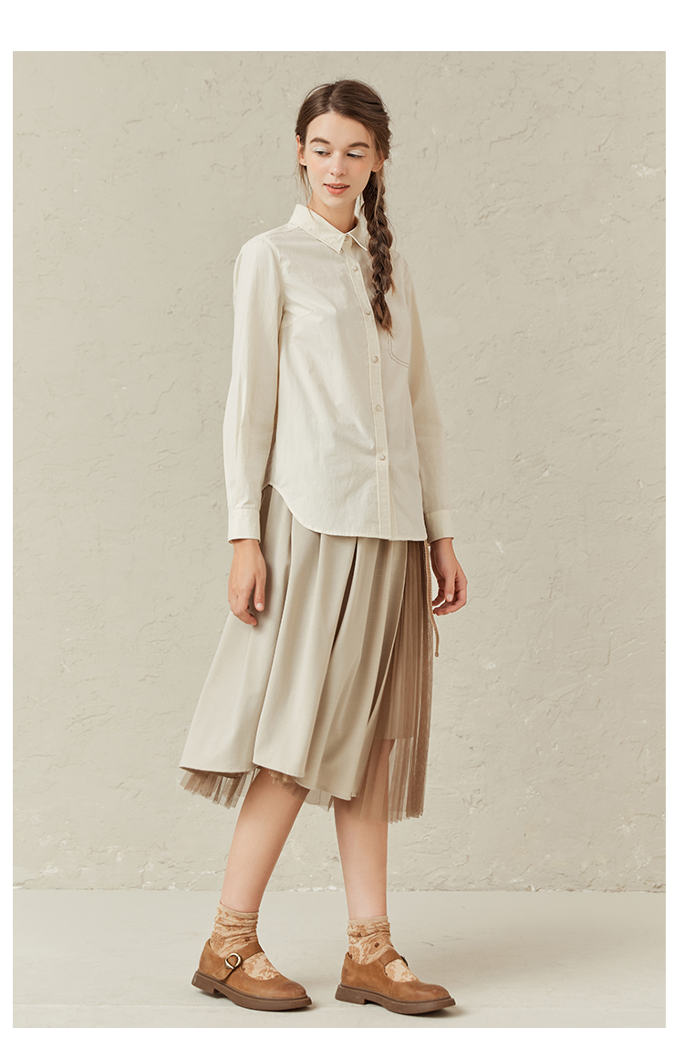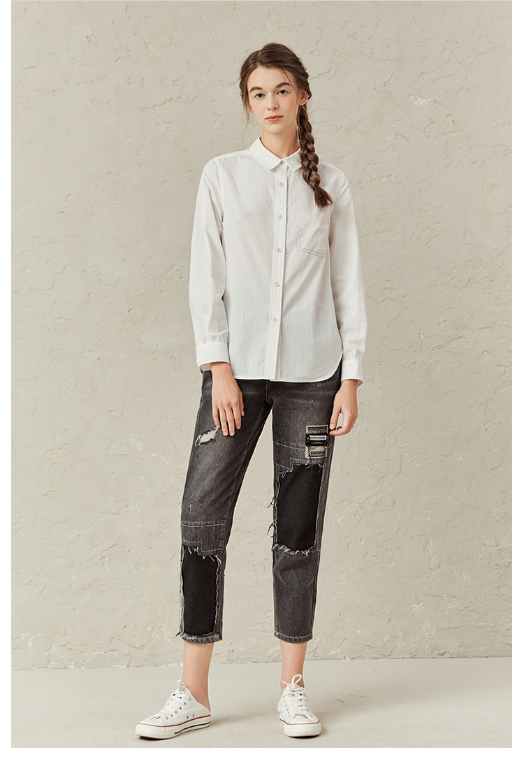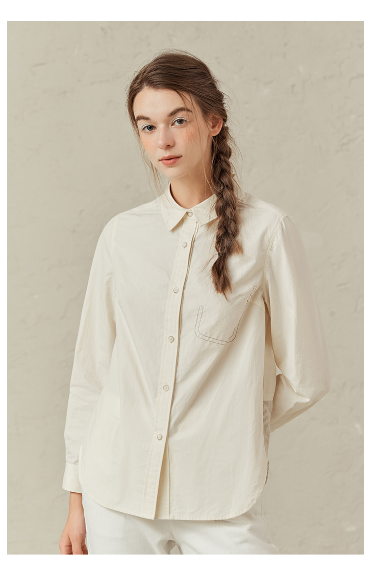Famecoco范可儿拼接条纹衬衫女早春小众别致上衣F221BA015