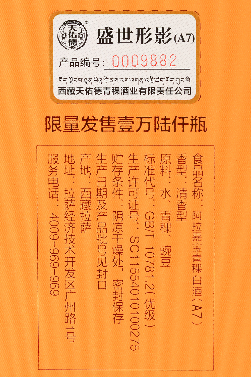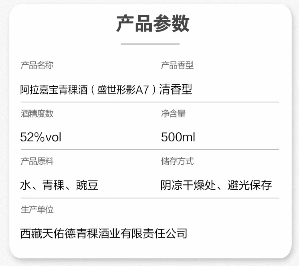 天佑德青稞酒 阿拉嘉宝(A7)青稞清香型 52° 单瓶 500ml