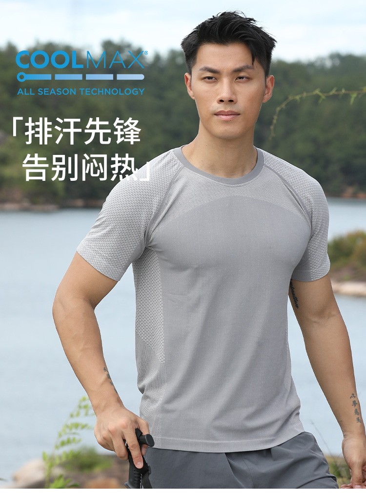 灰壳男士夏季户外运动速干T恤coolmax透气速干短袖运动基础圆领T恤打底