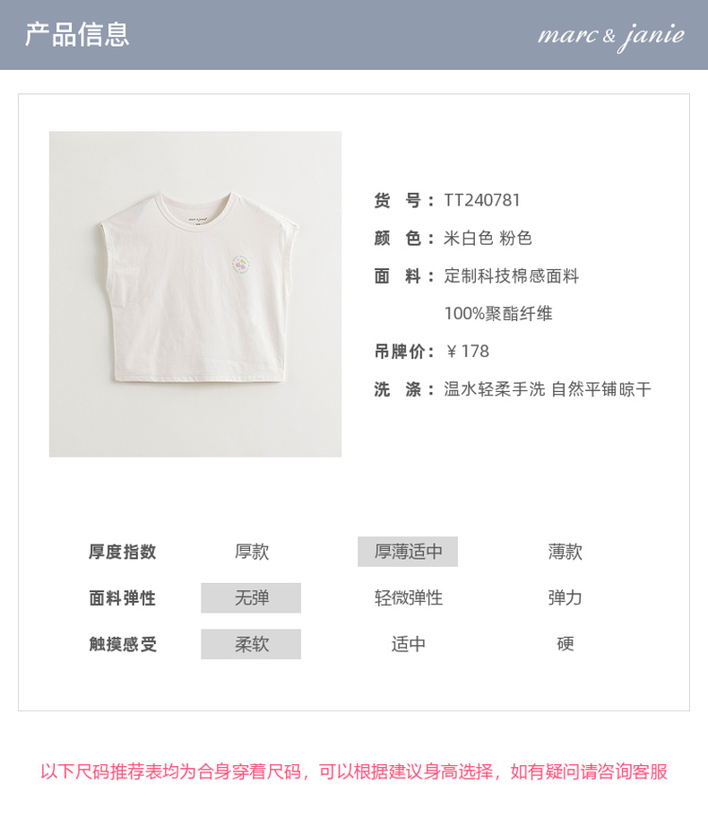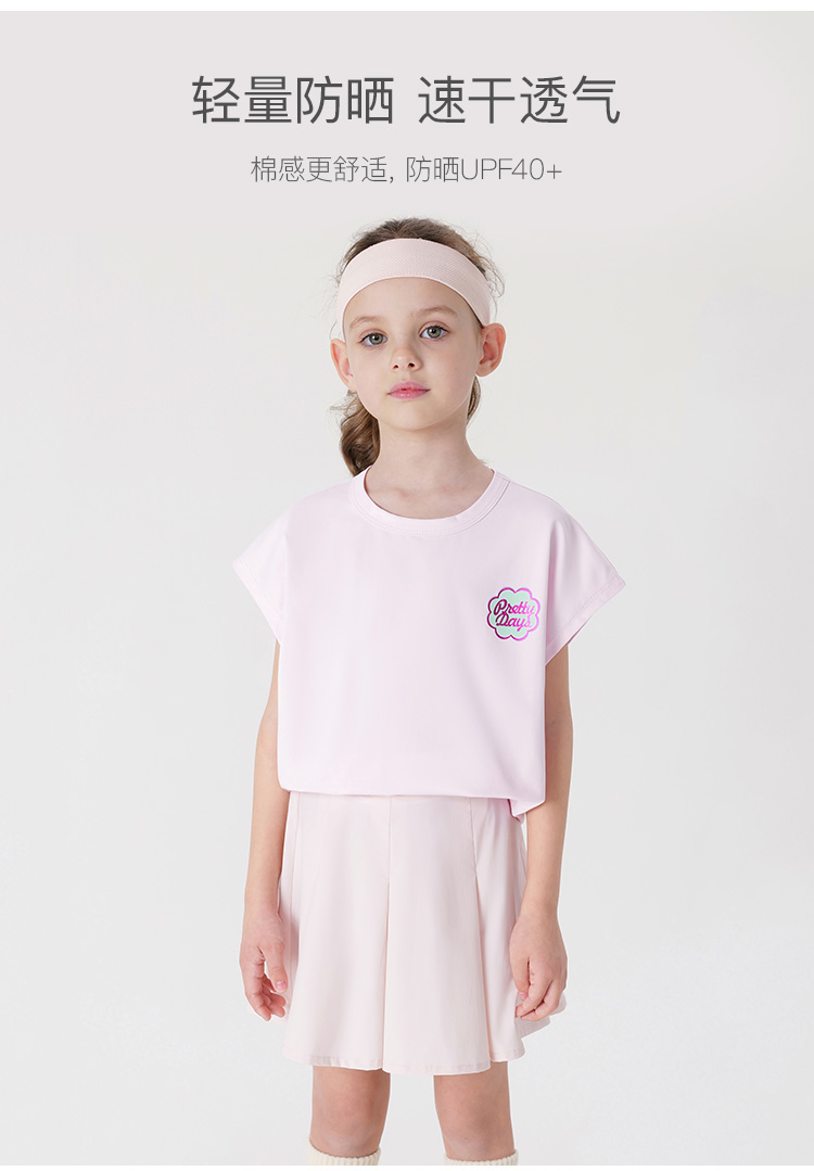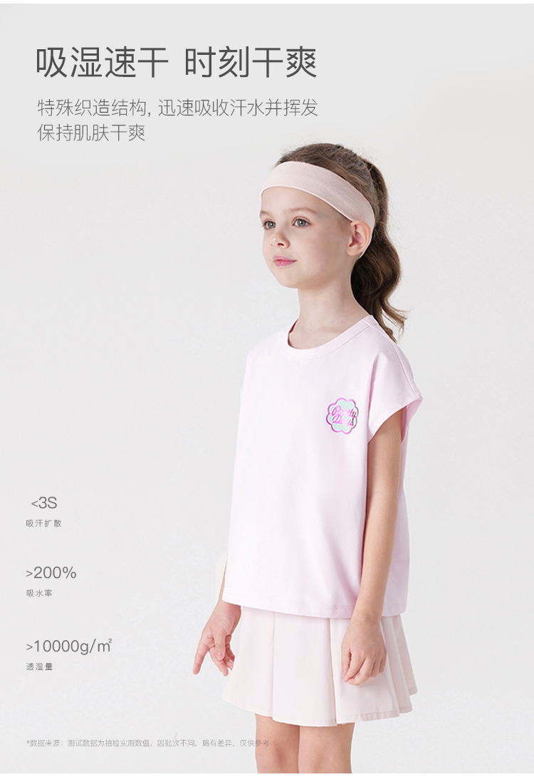 [棉感速干]马克珍妮女童宽松圆领短袖T恤儿童上衣夏装新款240781
