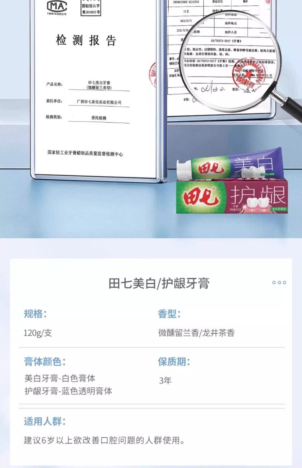 田七牙膏美白护龈120g清新口气清洁牙齿口腔家庭装