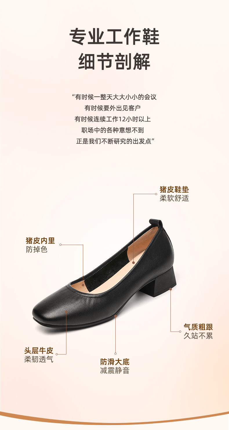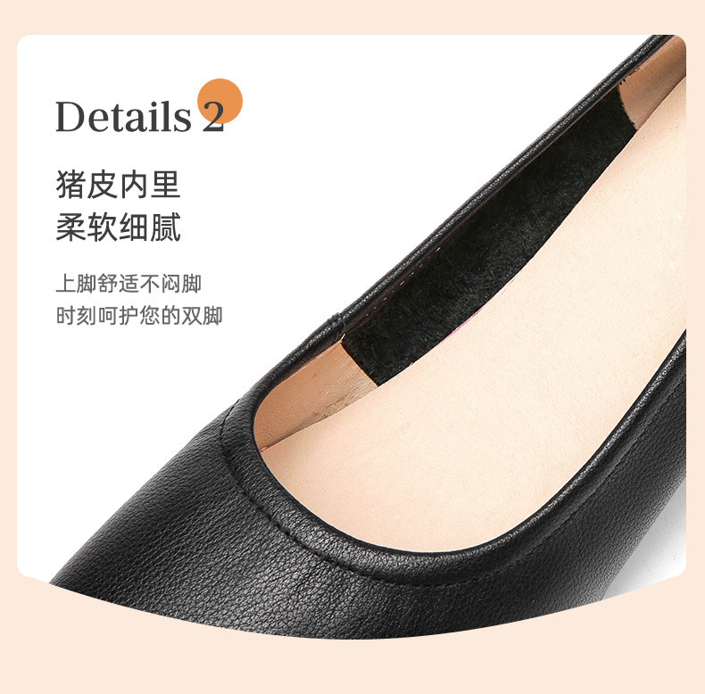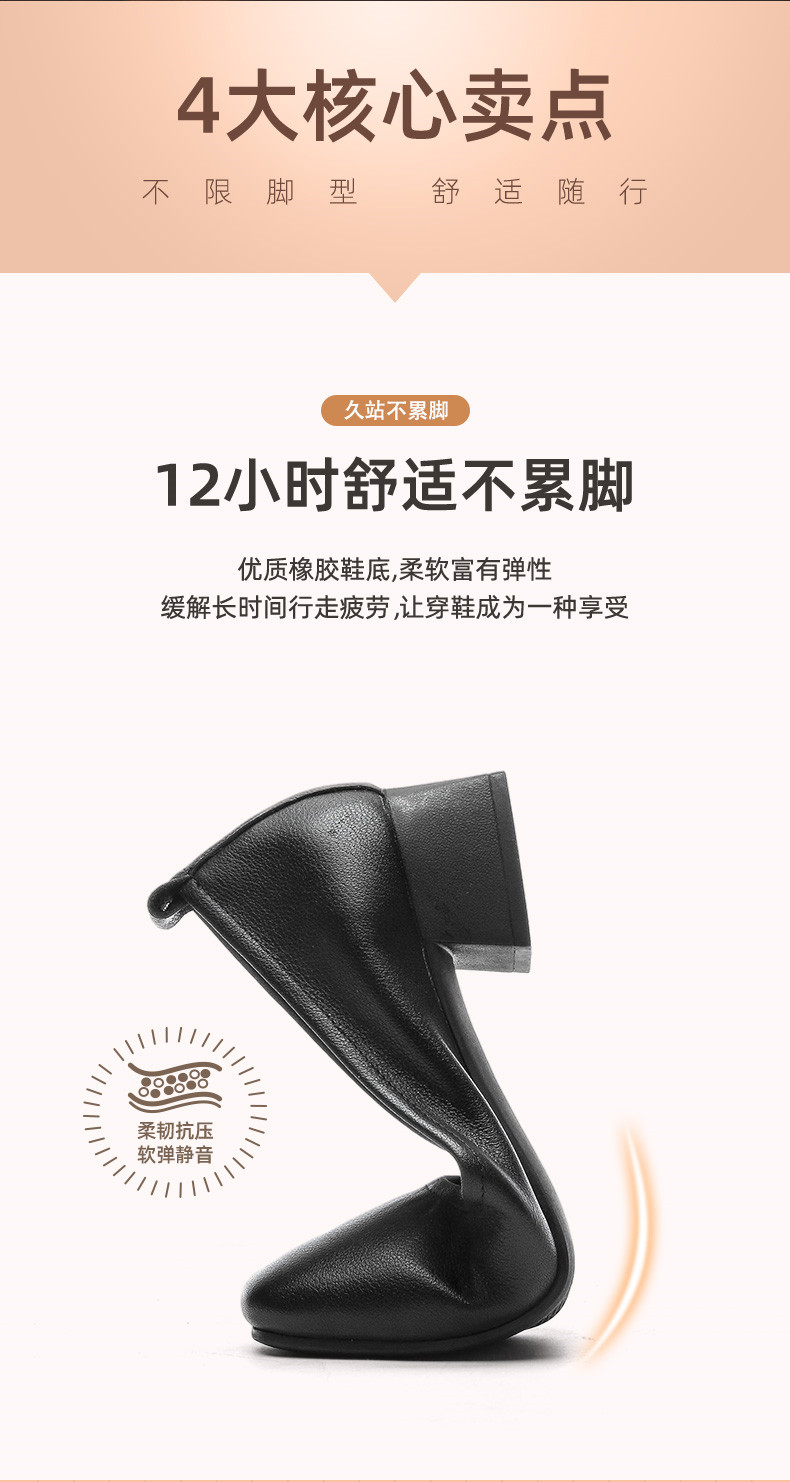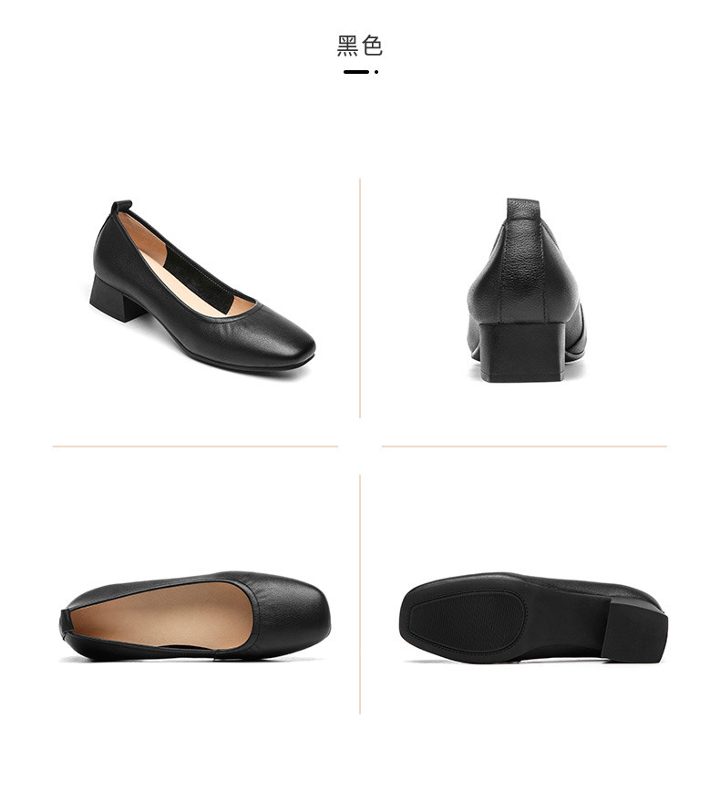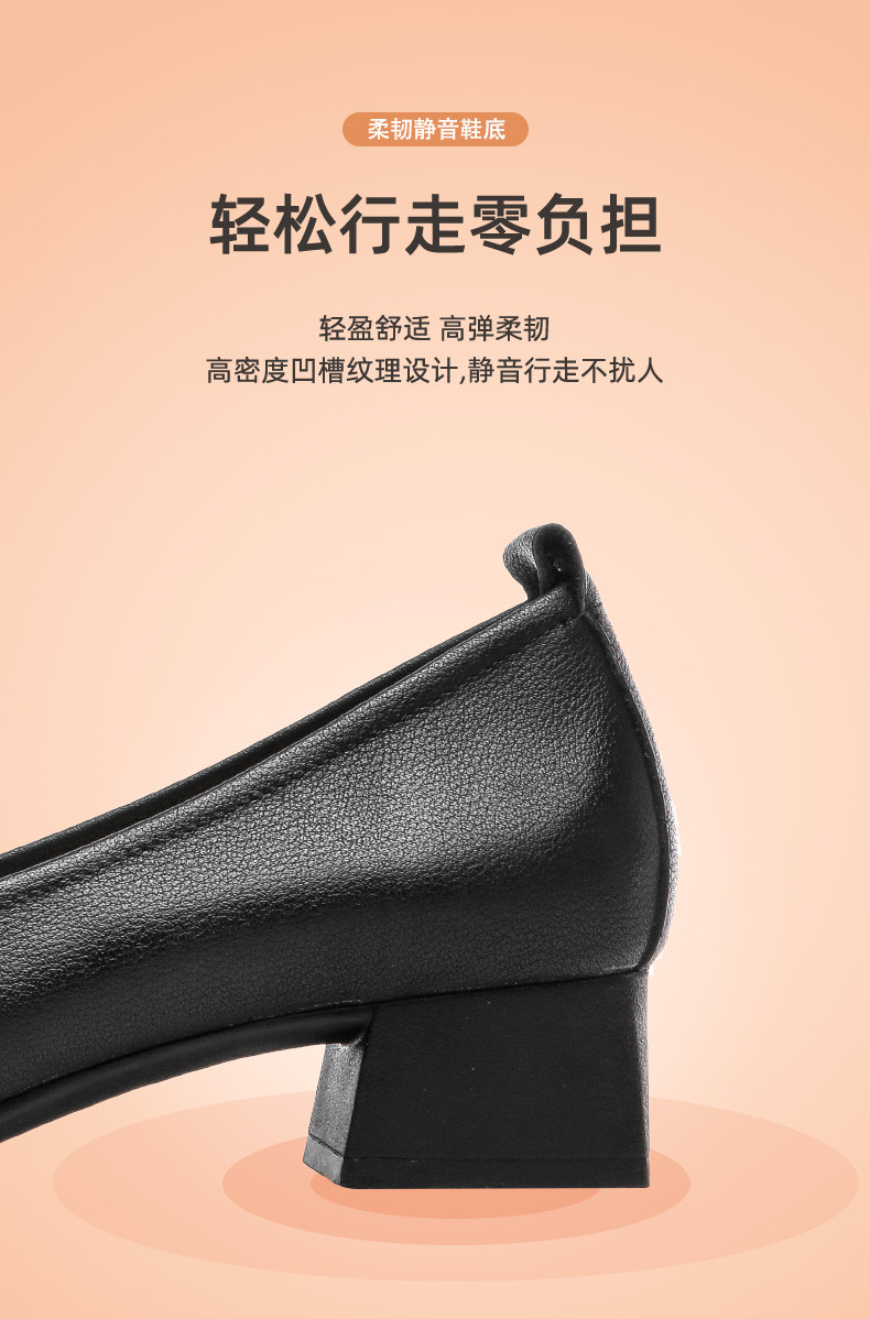 信诺真皮舒适女鞋粗跟高跟鞋女久站不累脚工作鞋黑色皮鞋职业单鞋22C1931-12