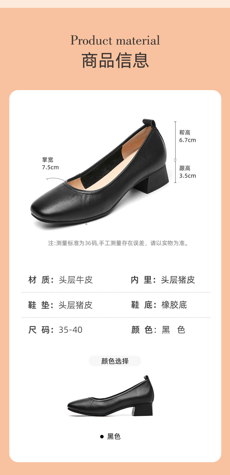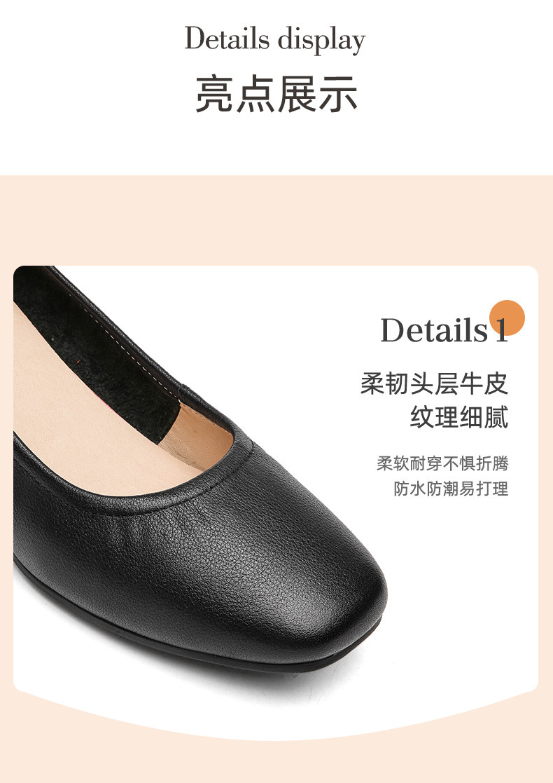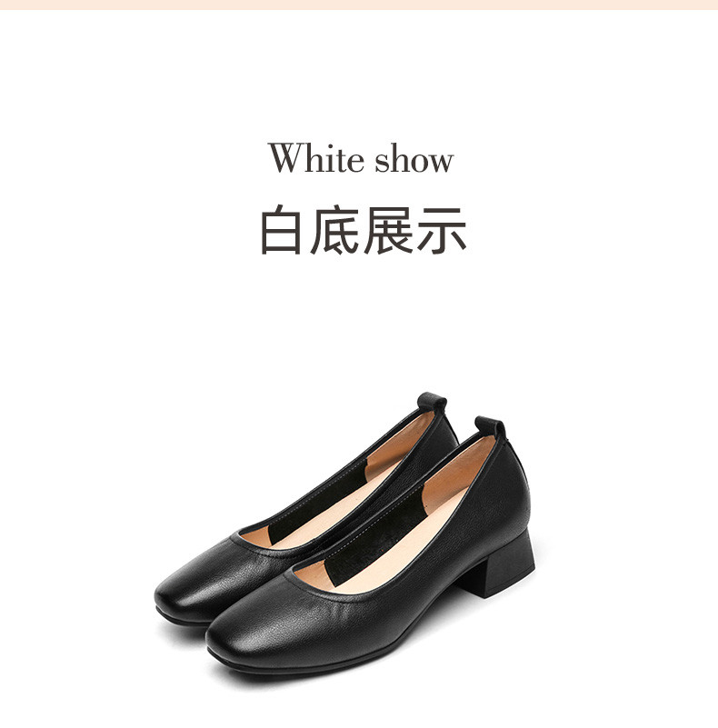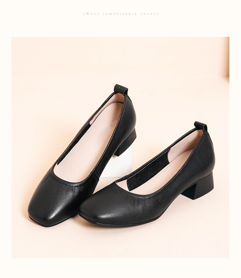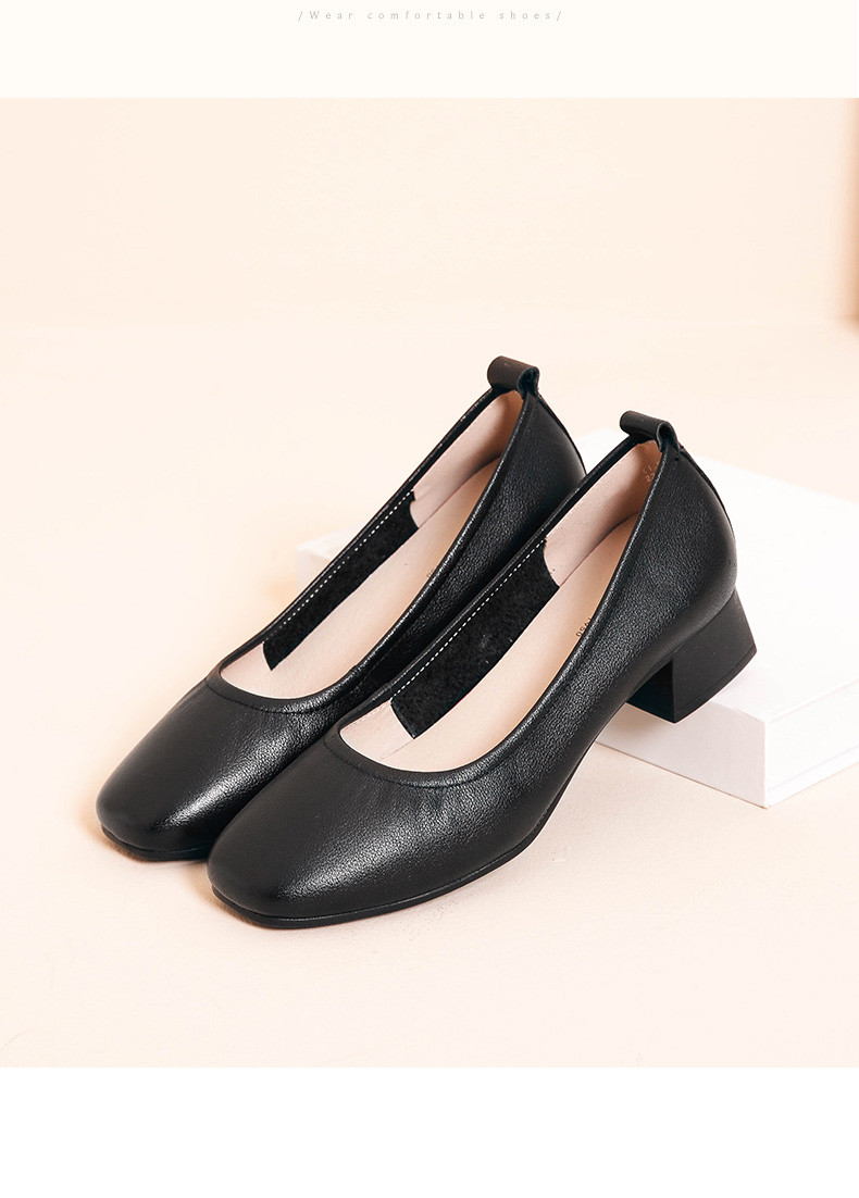 信诺真皮舒适女鞋粗跟高跟鞋女久站不累脚工作鞋黑色皮鞋职业单鞋22C1931-12
