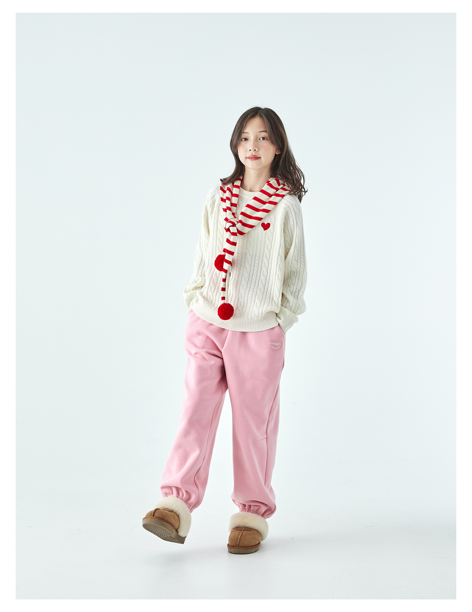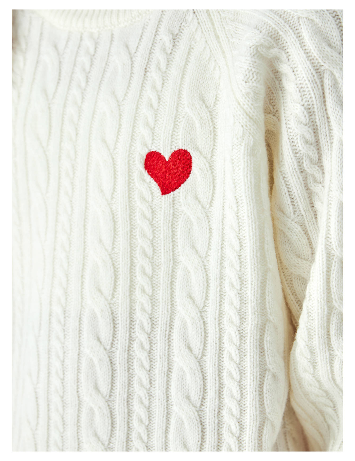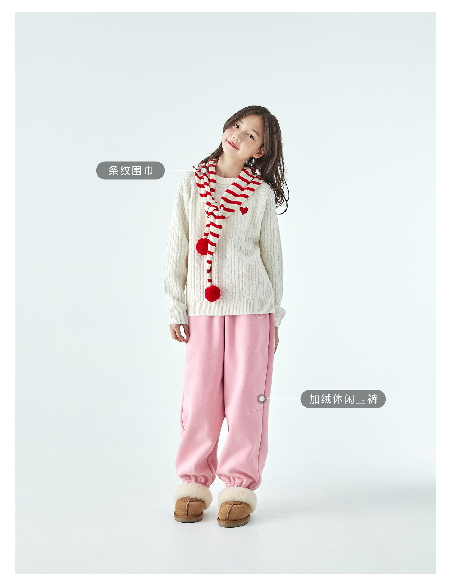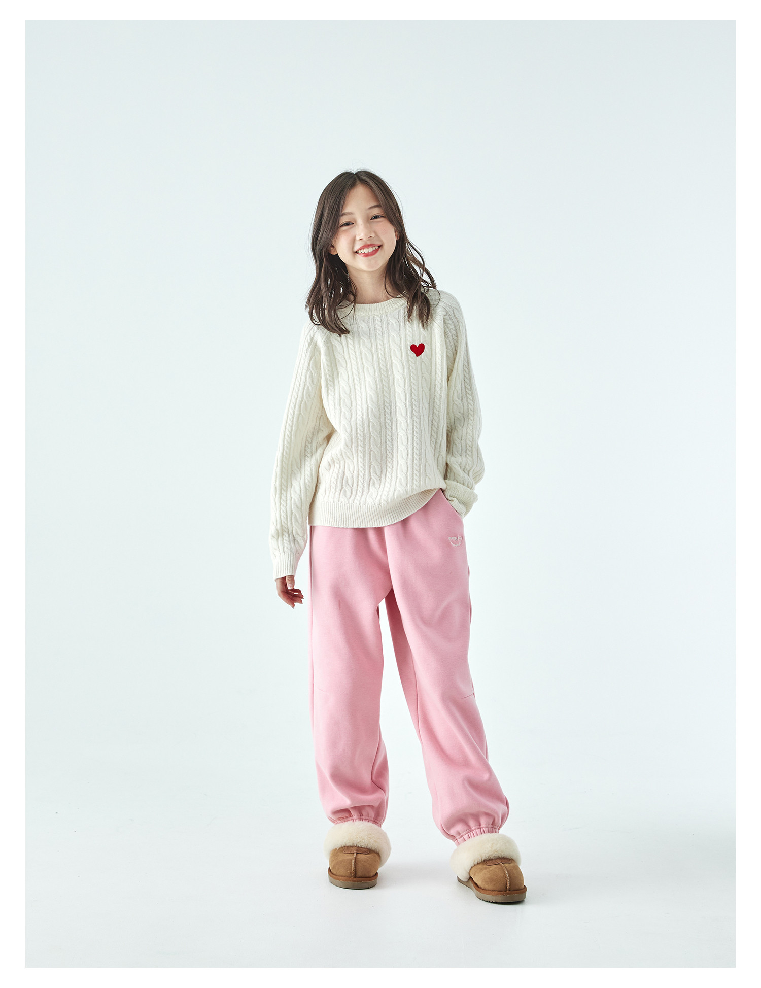 红色预售1.3发 棵初25年冬季新款亲子中大女童爱心绞花毛衣纯绵羊毛轻盈保暖上衣