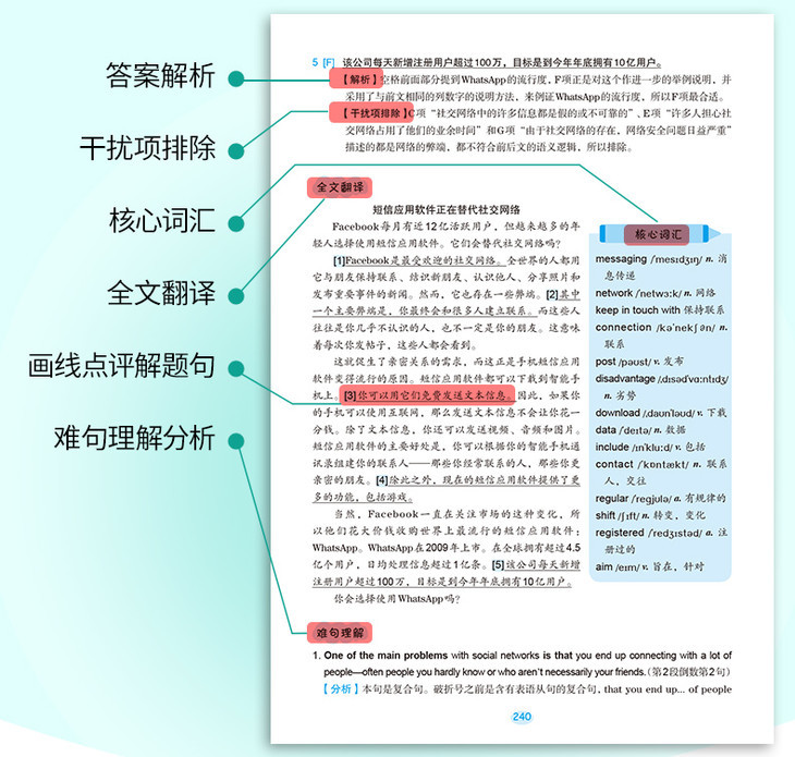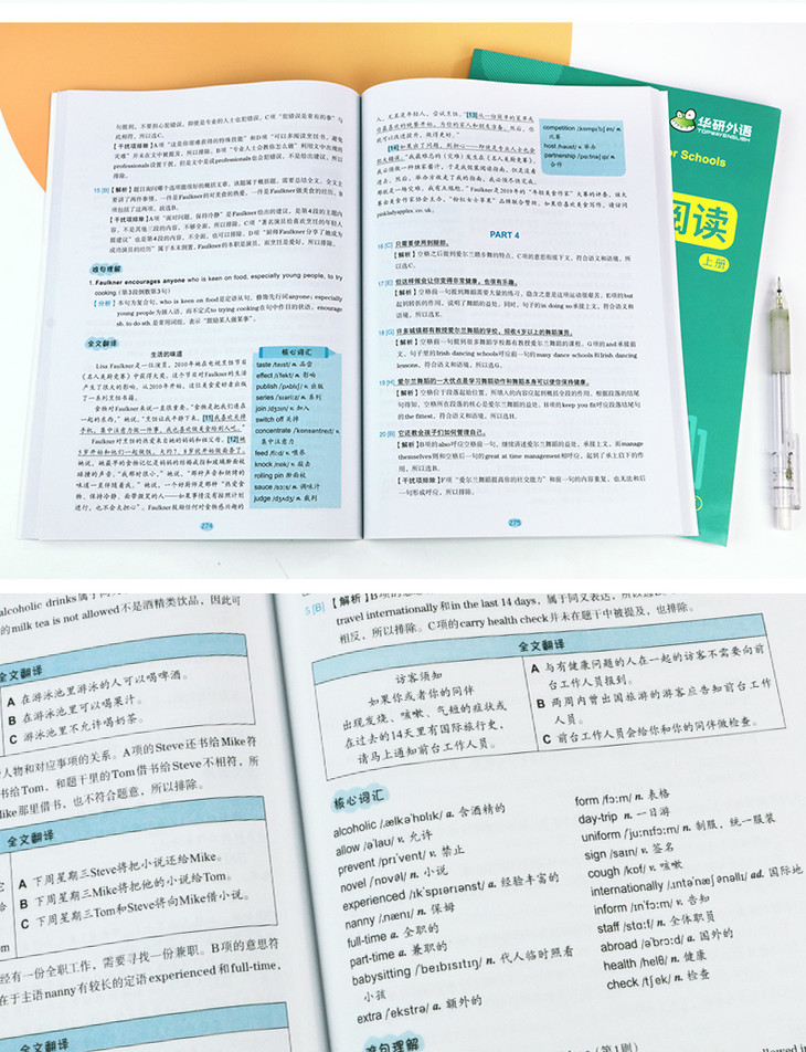 6.第三阶段,10套全真模拟试题,选材长度、难度、形式高度贴近真题,附有全文翻译和答案详解,精准刷题,解决“得分率不稳定”的问题;