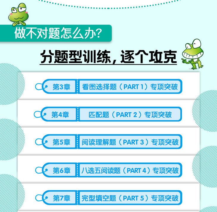 5.第二阶段,对6大题型进行针对性的技巧讲解及专项训练,掌握命题规律,将弱项各个击破,解决“看得懂,做不对”的问题;