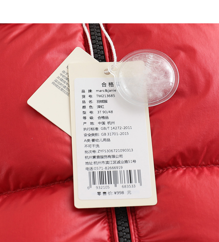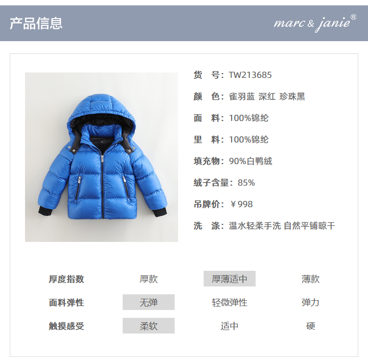 马克珍妮新款冬装 男童加厚保暖羽绒服 儿童羽绒外套213685