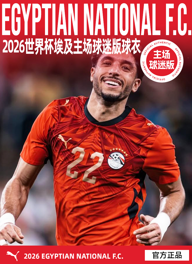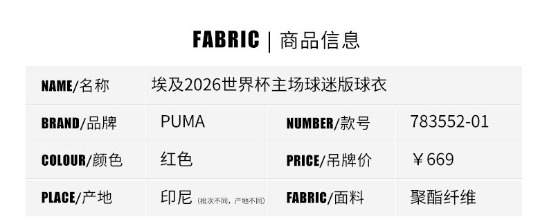 SFS彪马Puma 2026世界杯埃及主场球迷版球衣短袖足球服 783552-01