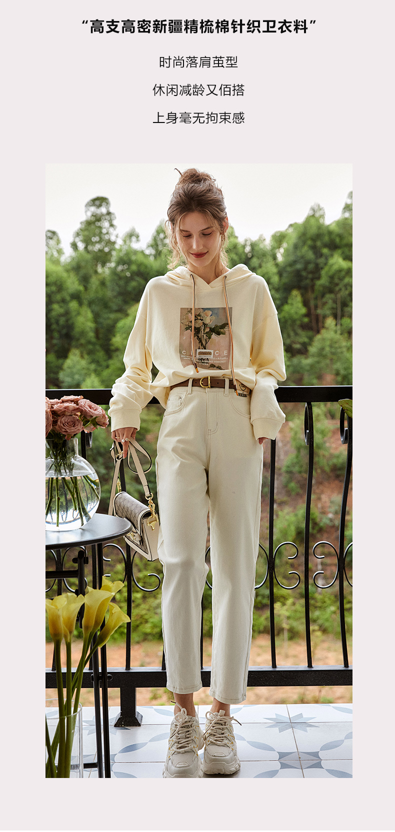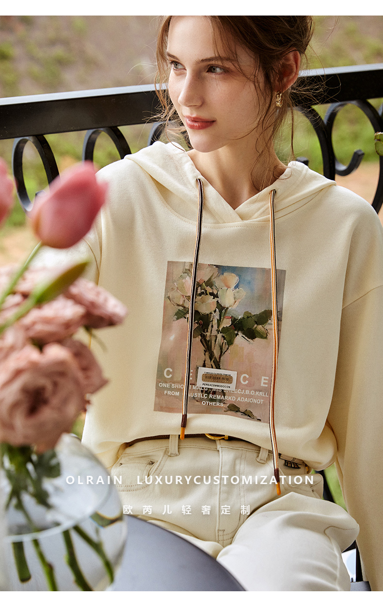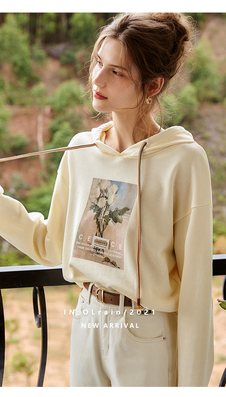 欧芮儿连帽卫衣女2021新款宽松慵懒风小个子薄款套头上衣ins
