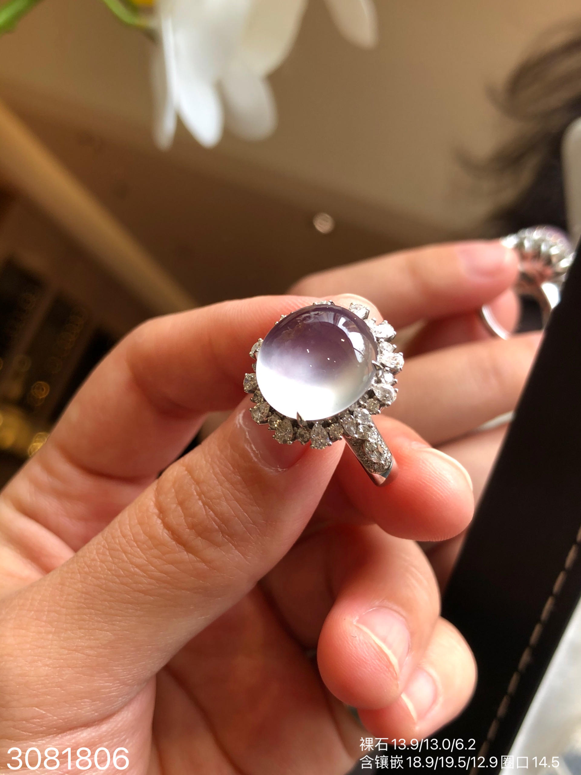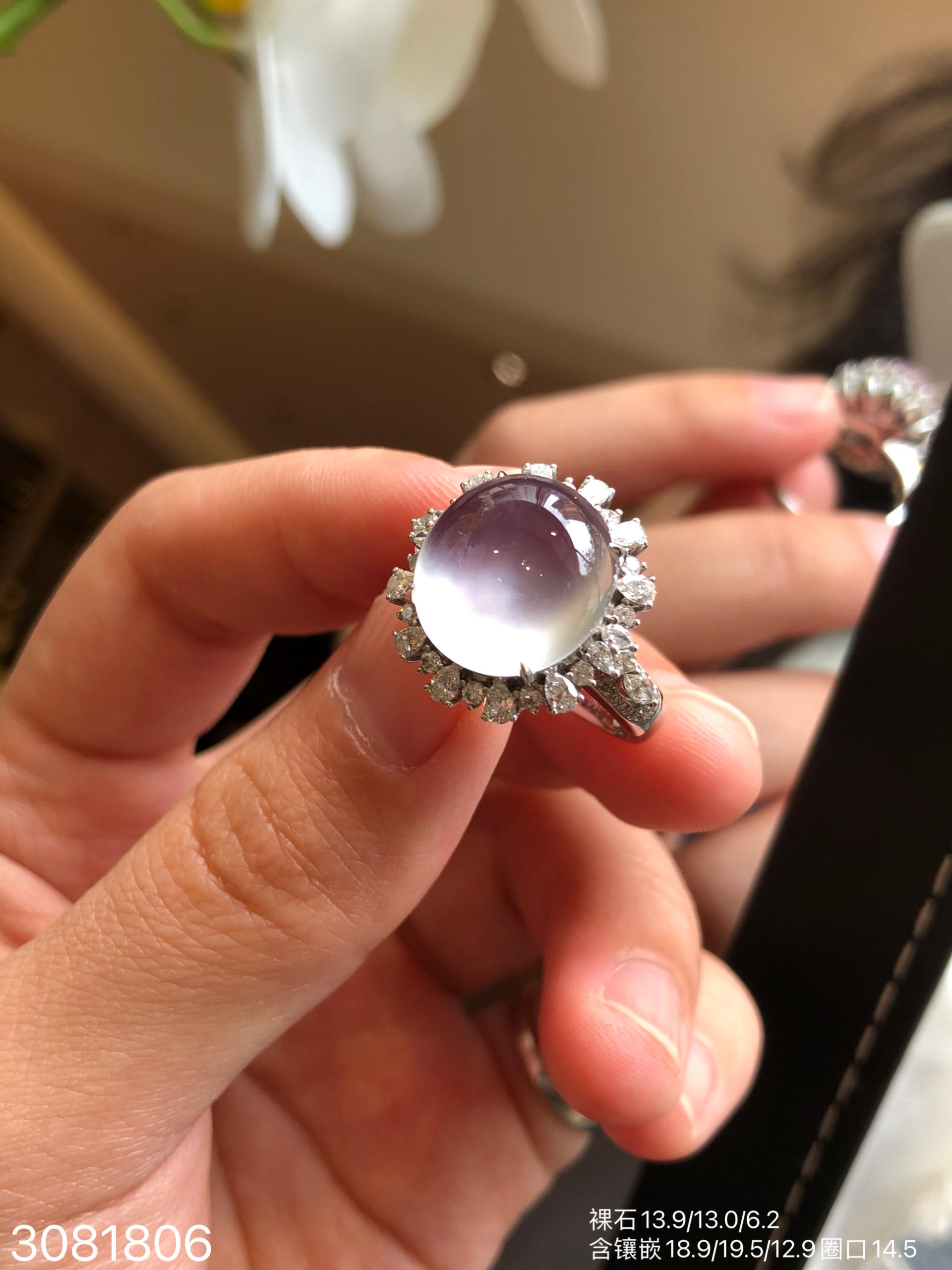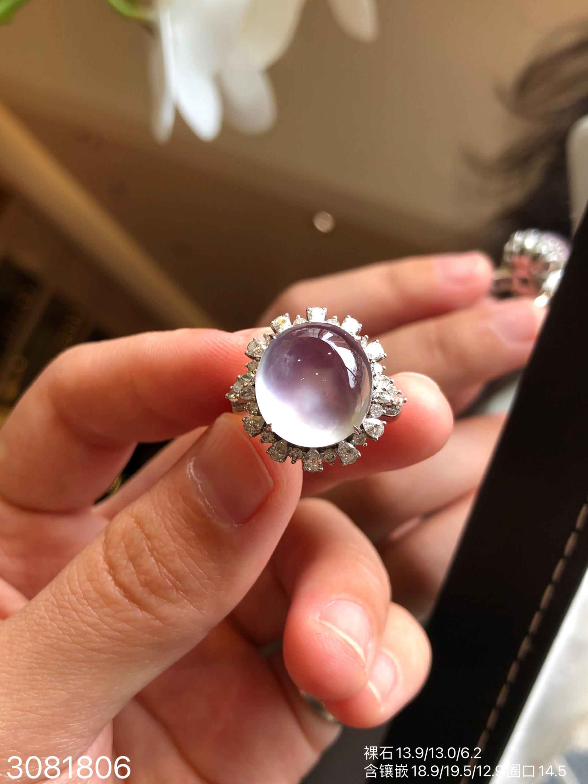 3081806,玻璃粉玻璃粉紫蛋面戒指。具体价格微信咨询