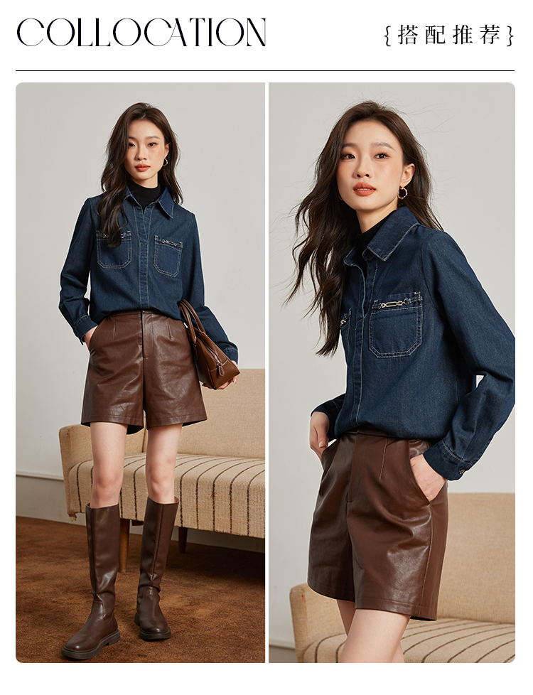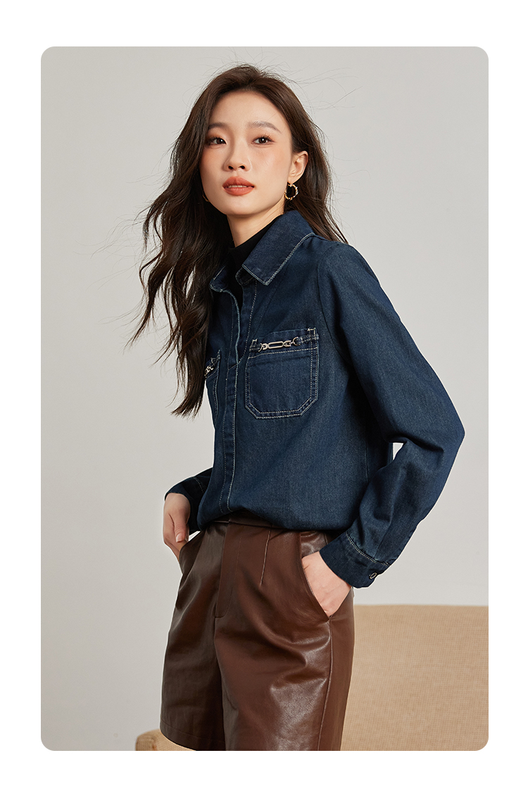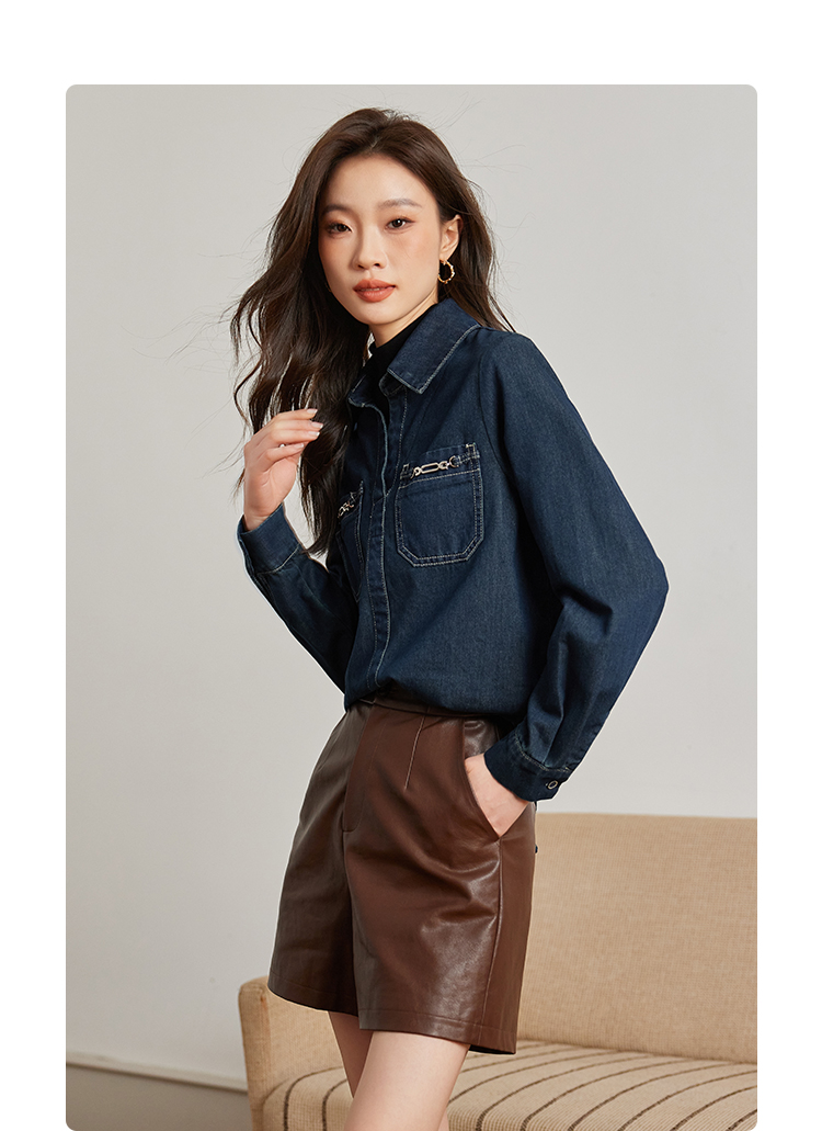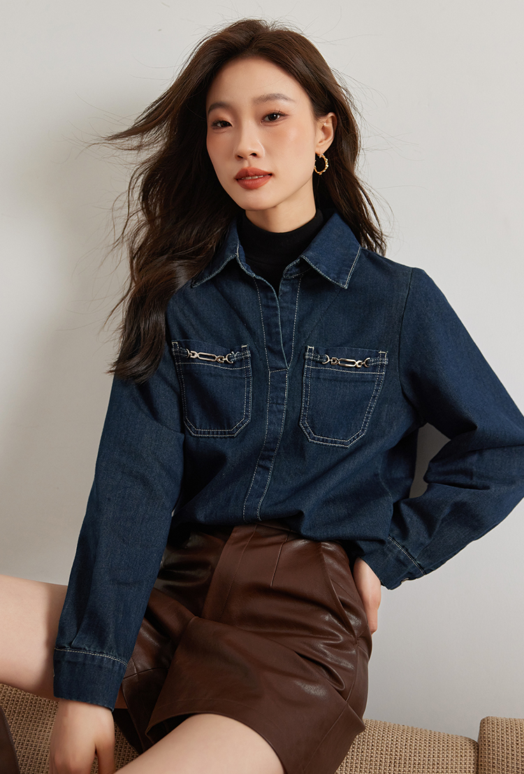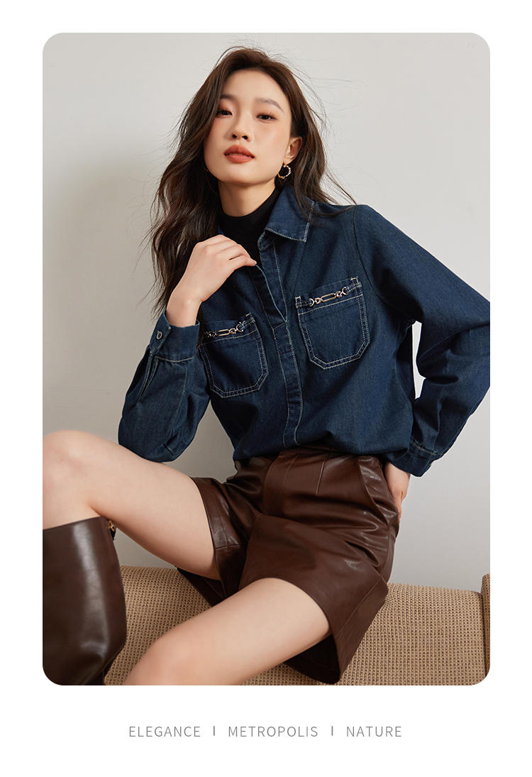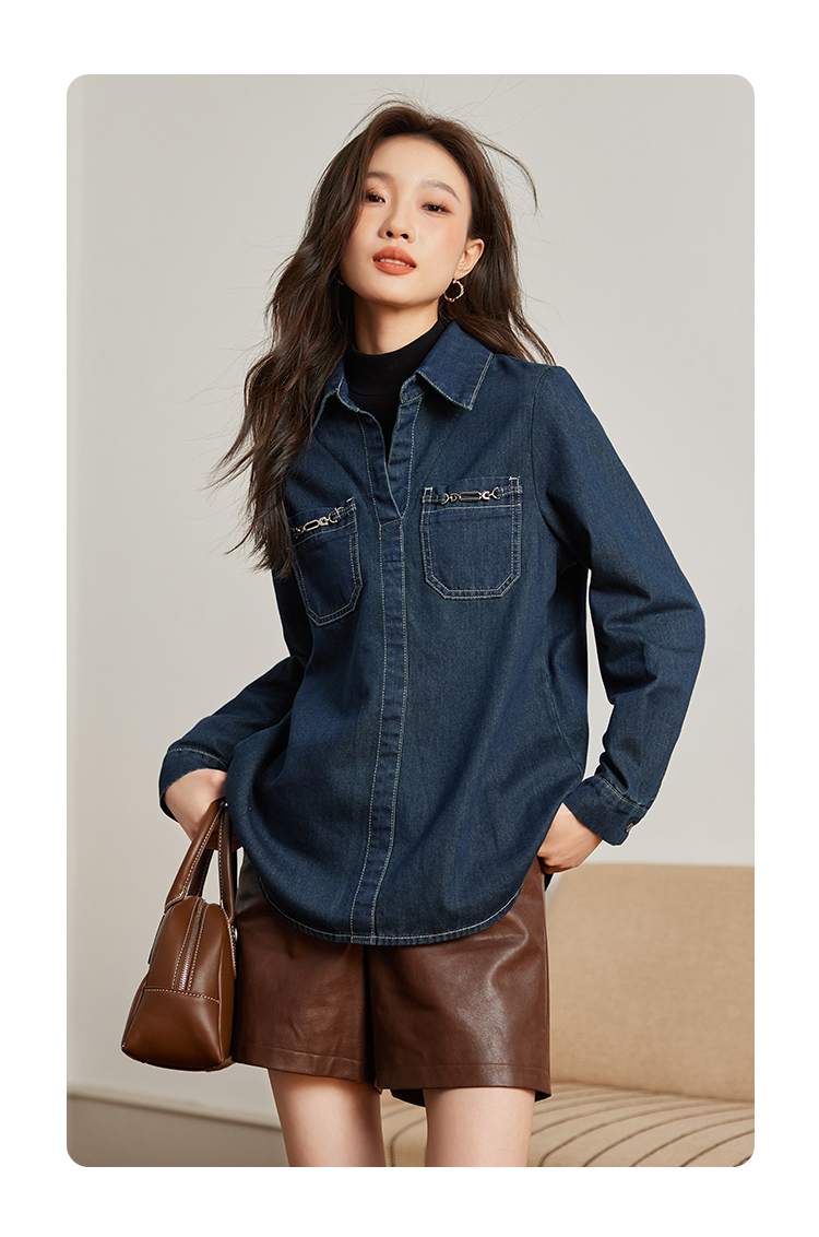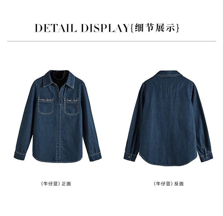 【99元福袋,不支持退换】熙世界假两件长袖牛仔衬衫女秋冬设计感叠穿衬衣上衣