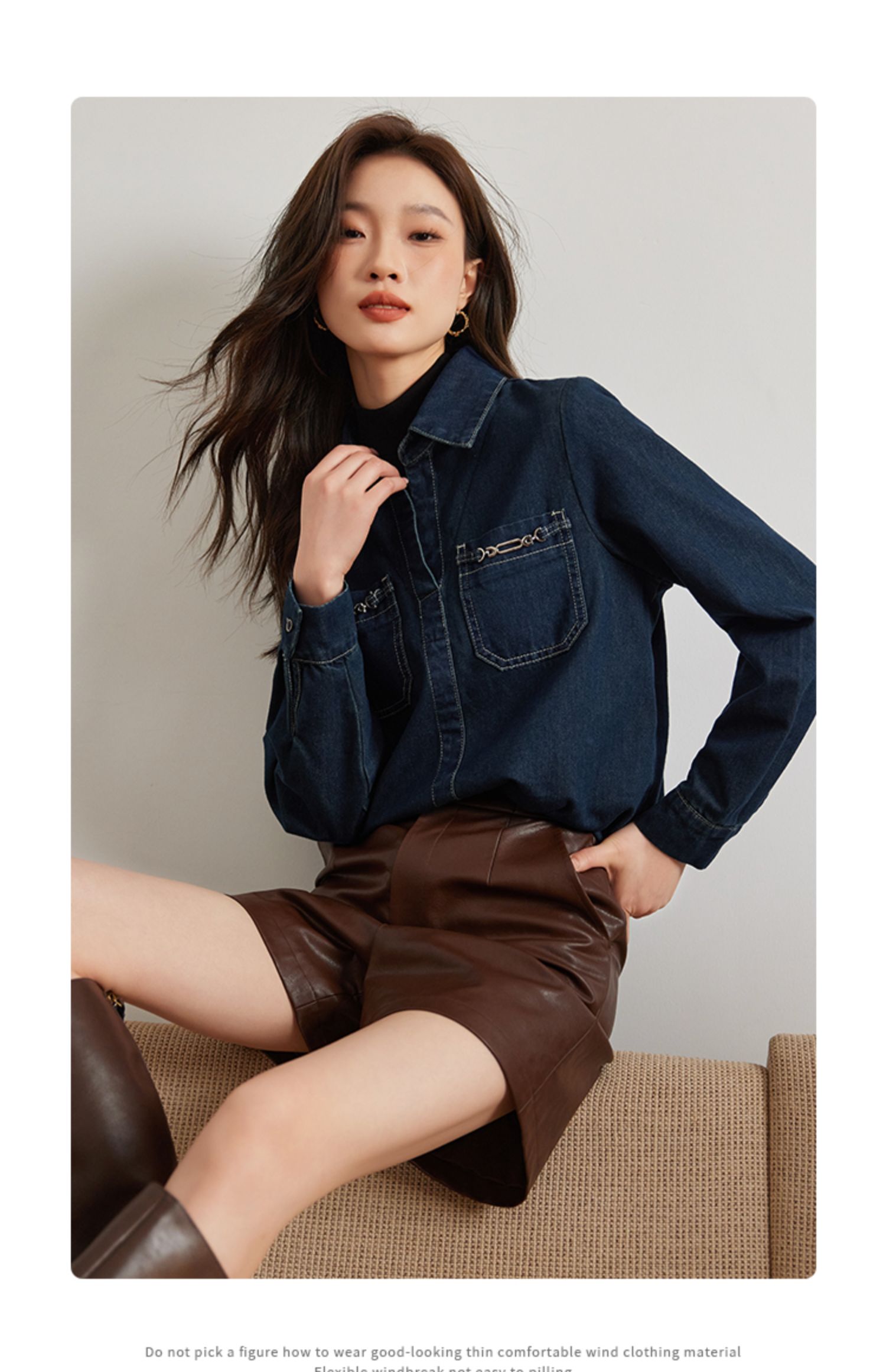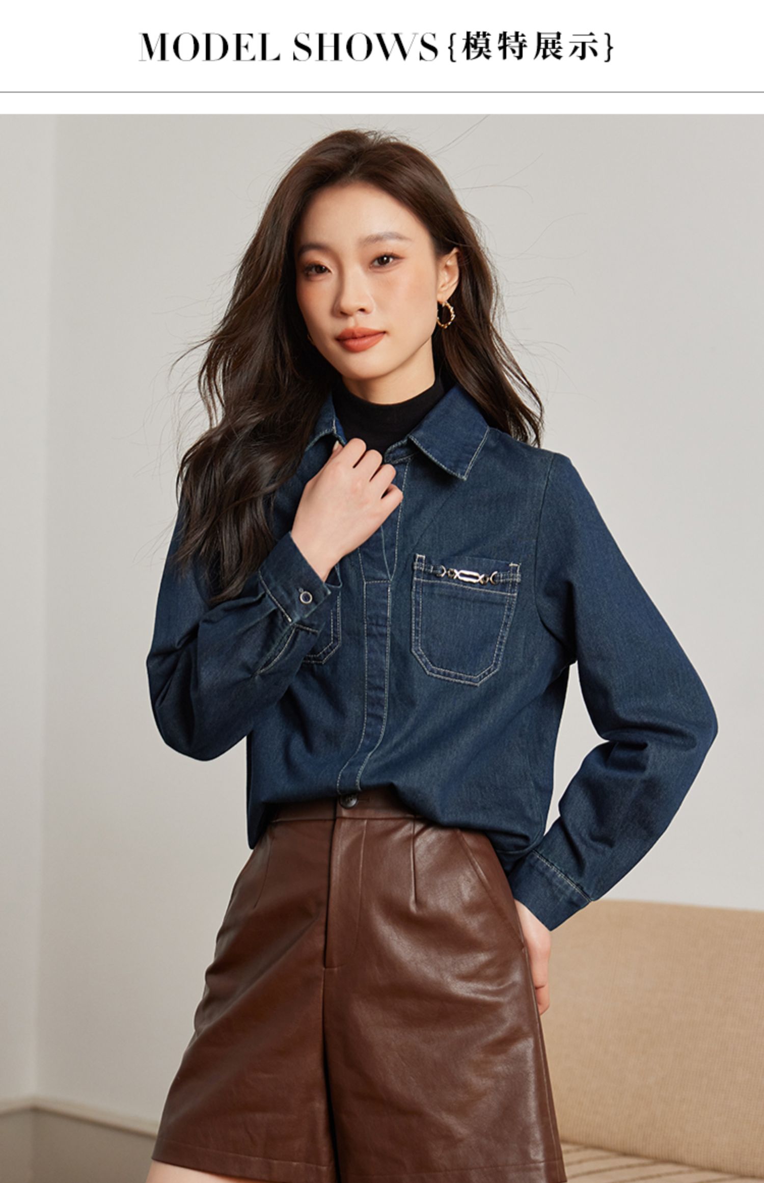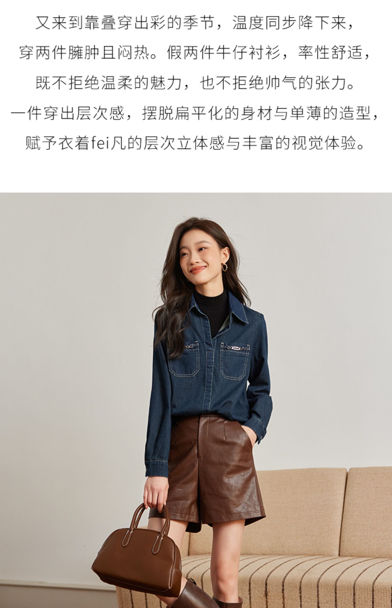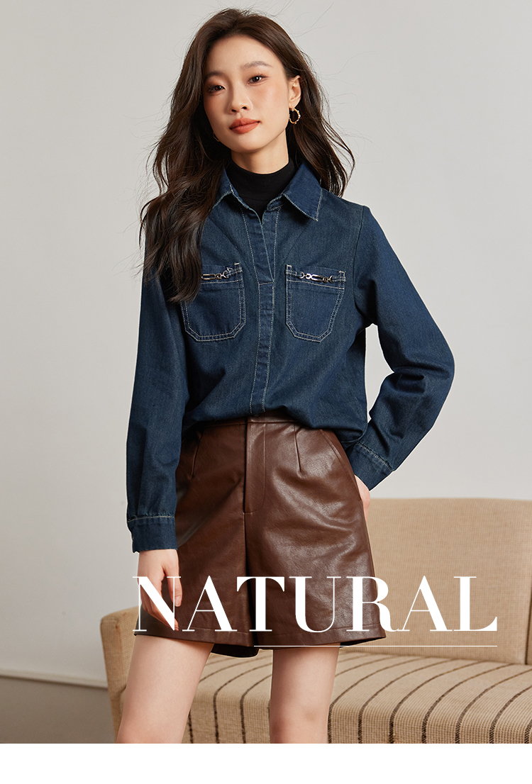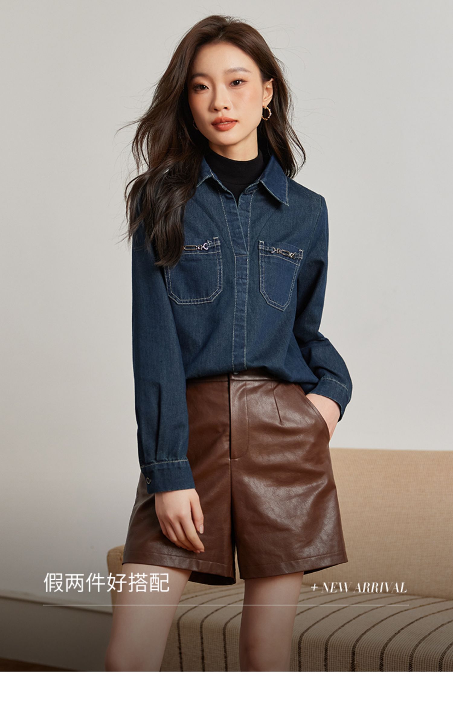 【99元福袋,不支持退换】熙世界假两件长袖牛仔衬衫女秋冬设计感叠穿衬衣上衣