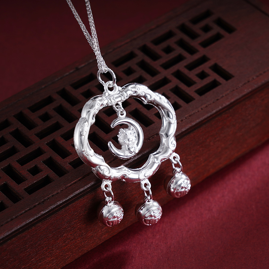 子佩集S999银【灵动萌龙】长命锁套链项链【SB000353】纯银儿童-月亮2412