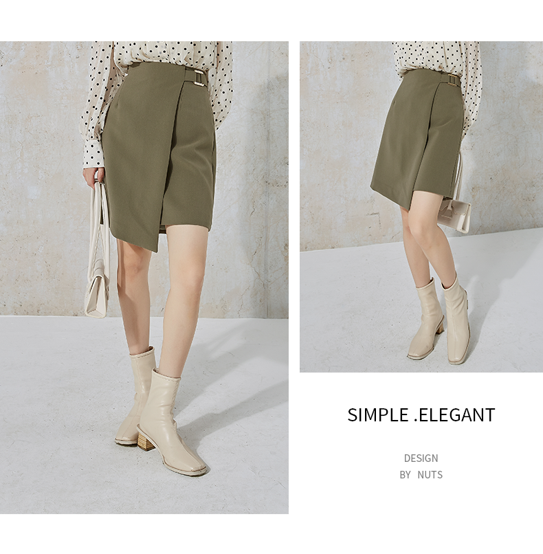NUTS秋季新款纯色通勤风开叉设计包臀半身短裙女231061007B