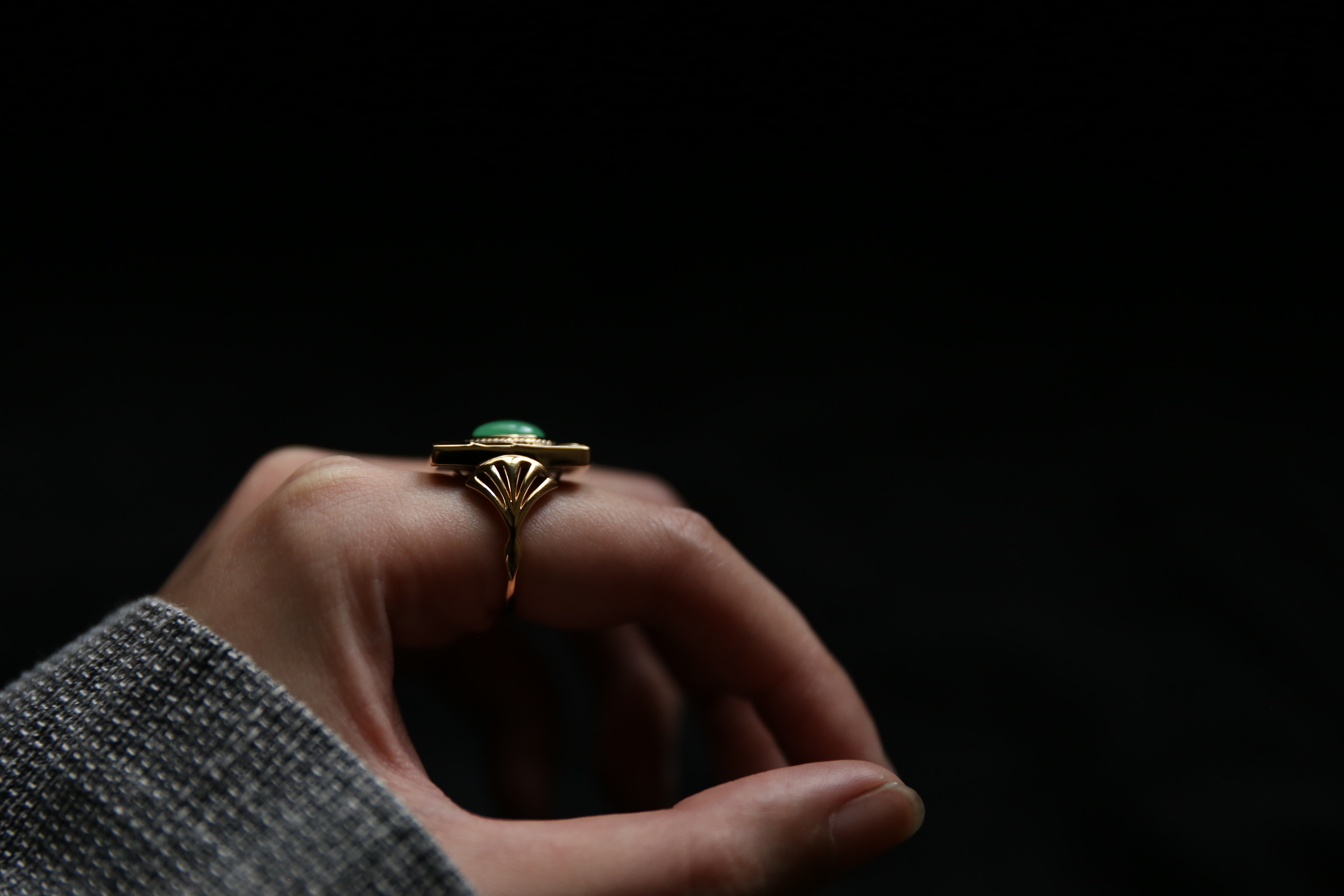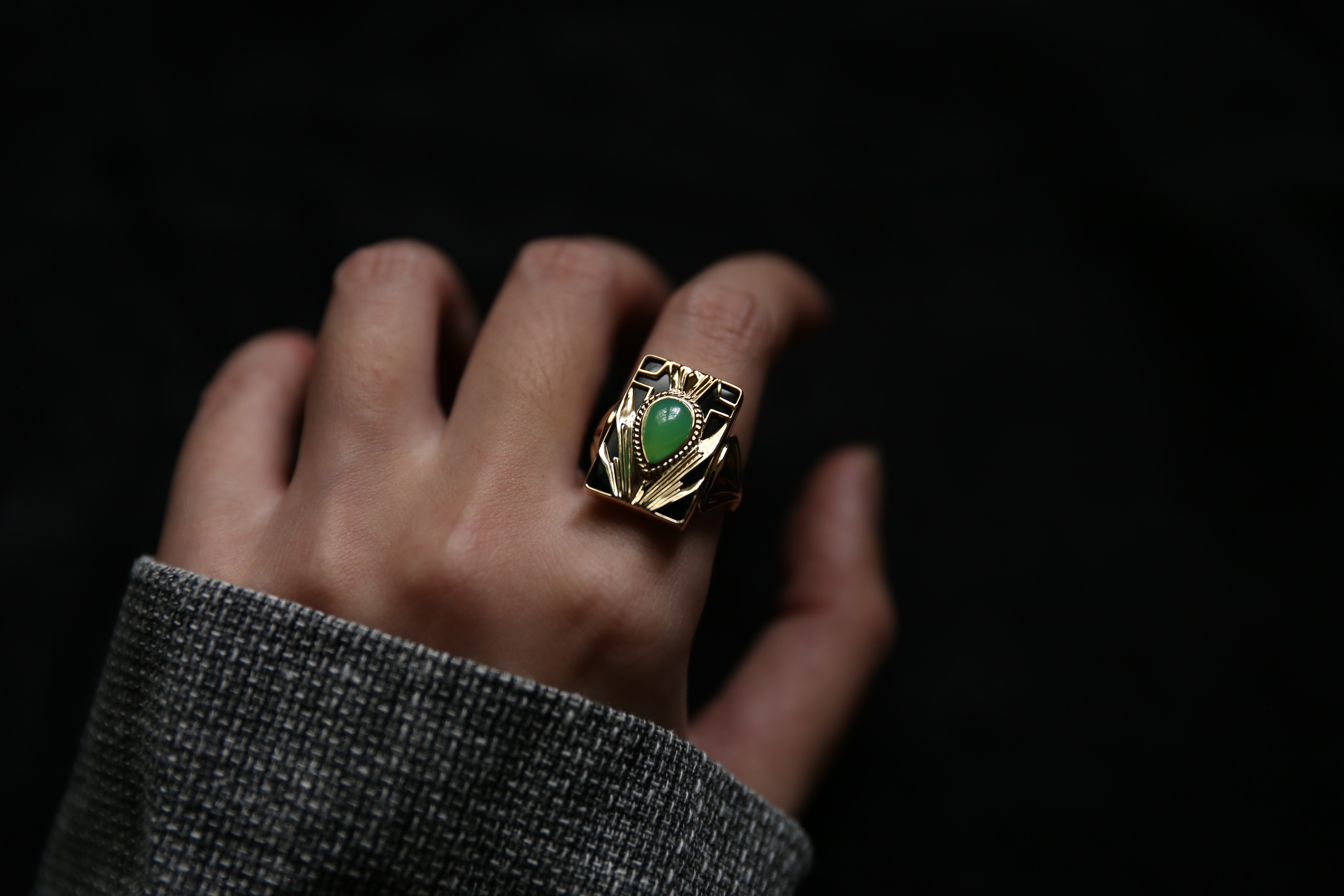 ArtDeco风格18K金翡翠耳钉改造定制戒指