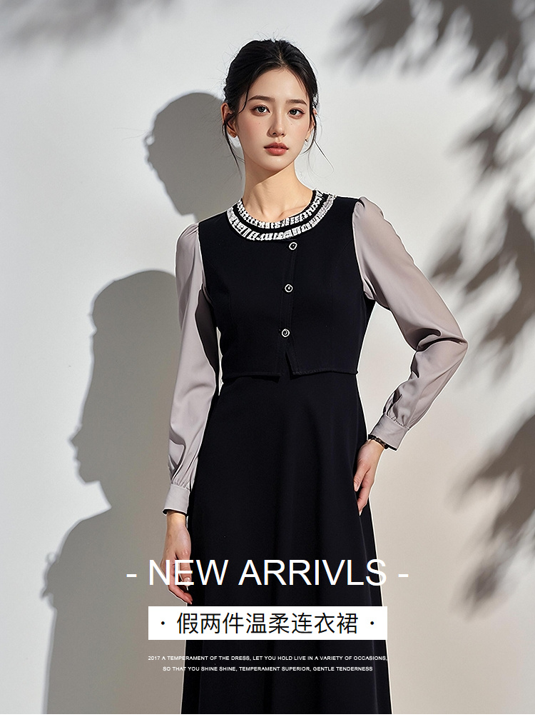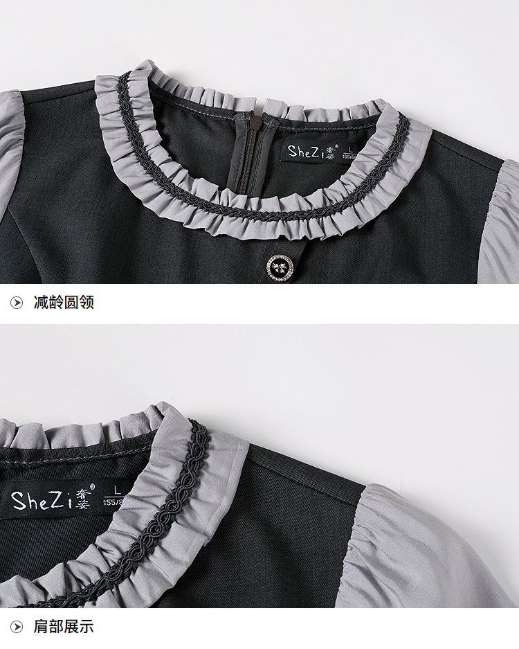 奢姿2025年春季新款大码女装织带圆领裙子胖妹妹温柔洋气连衣裙9951853103