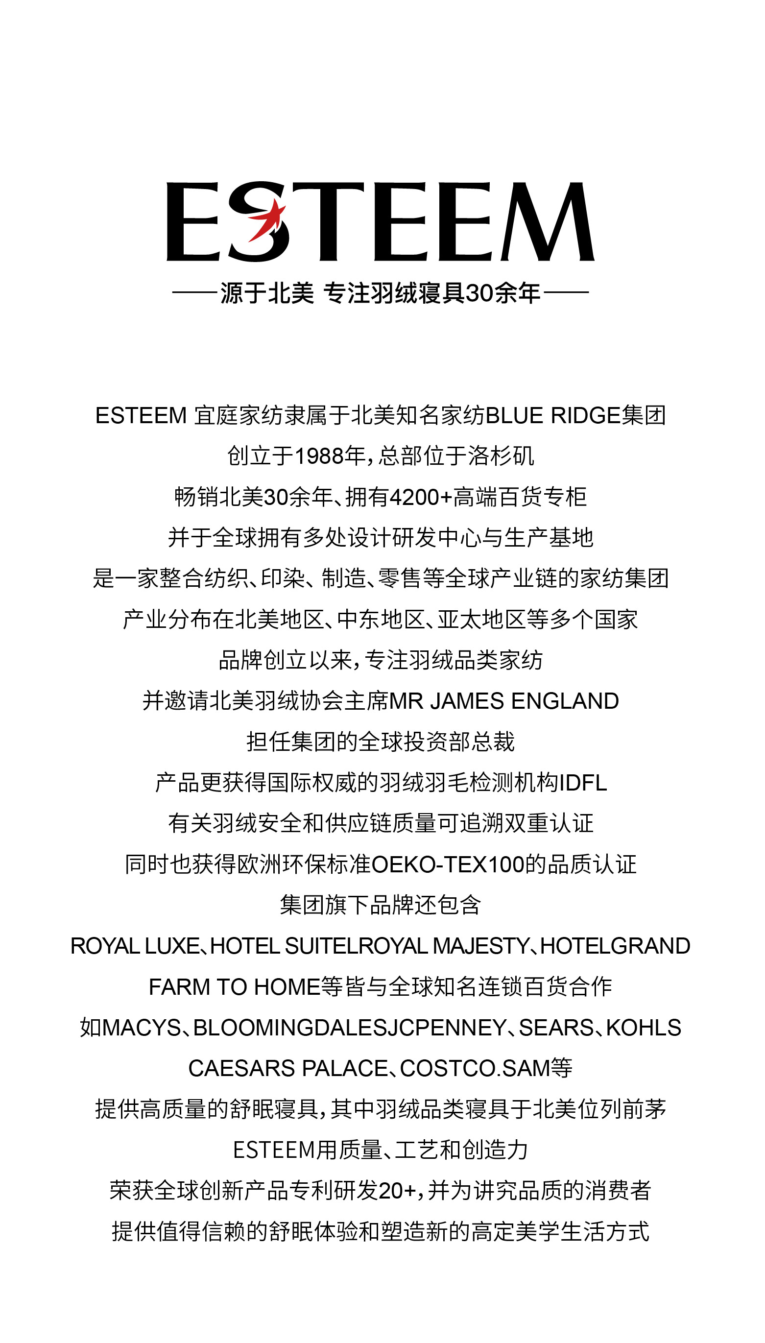 95%白鹅绒 柔软 回弹 支撑 ESTEEM舒芯枕