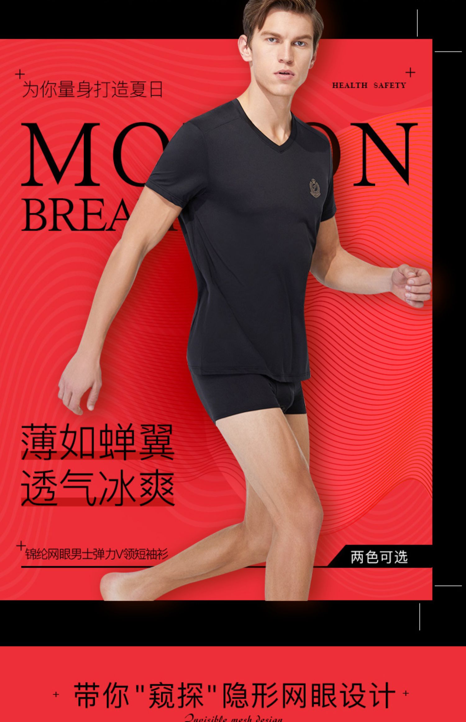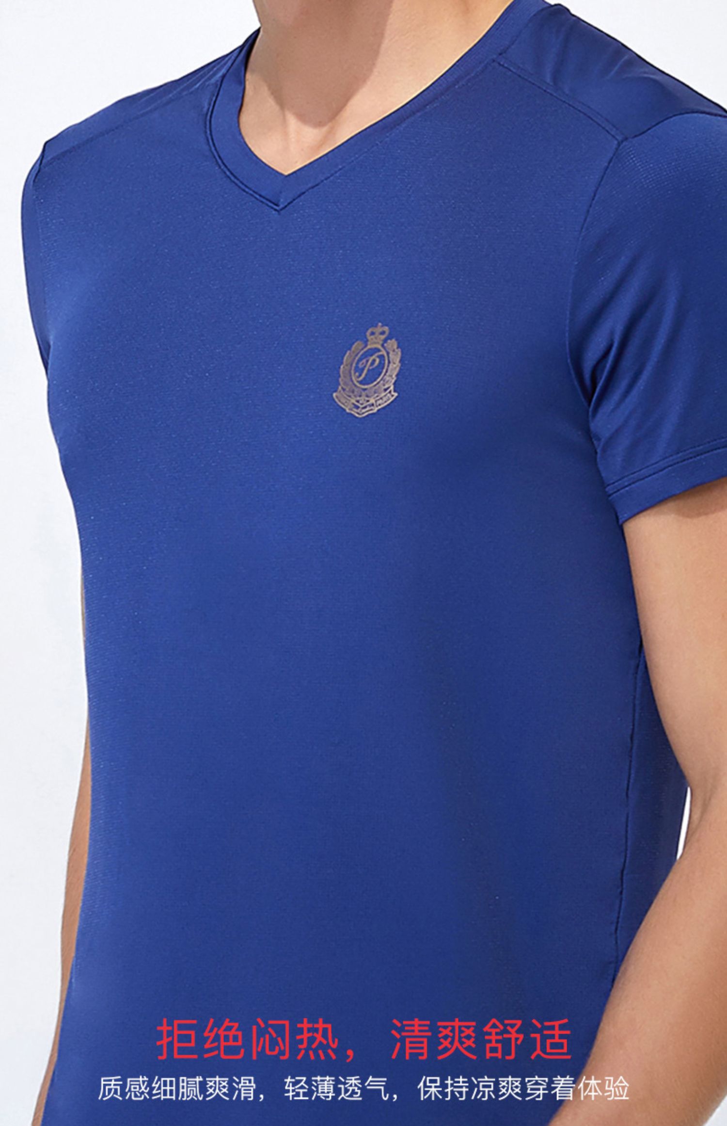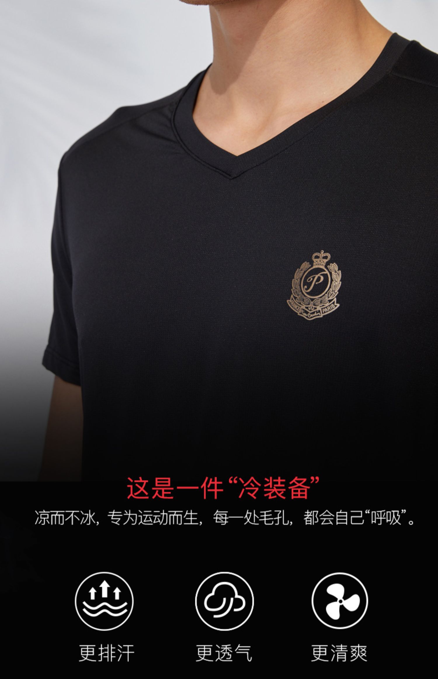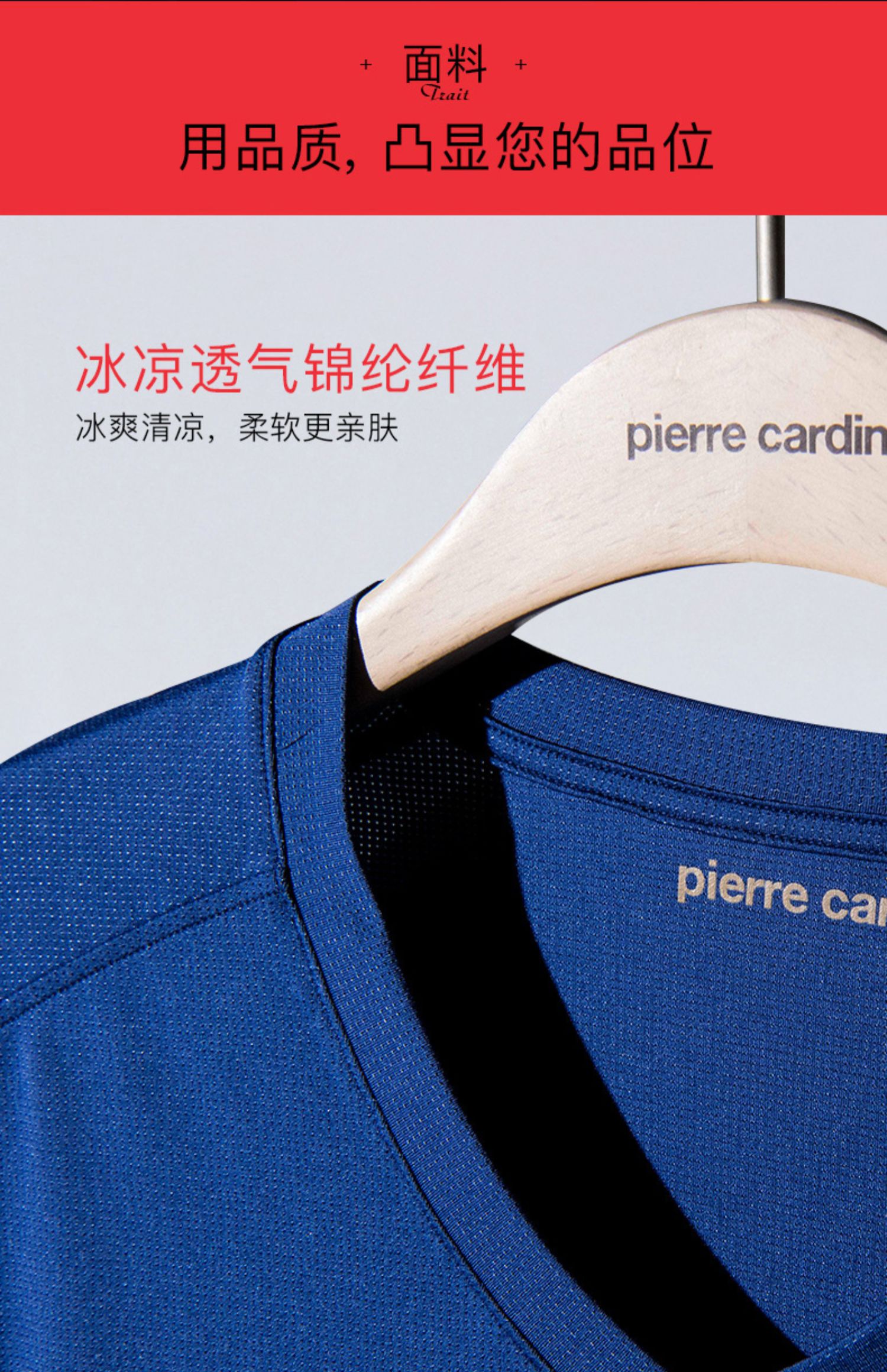 皮尔卡丹锦纶网眼运动系列T恤弹力透气排汗短袖衫男士打底衫
