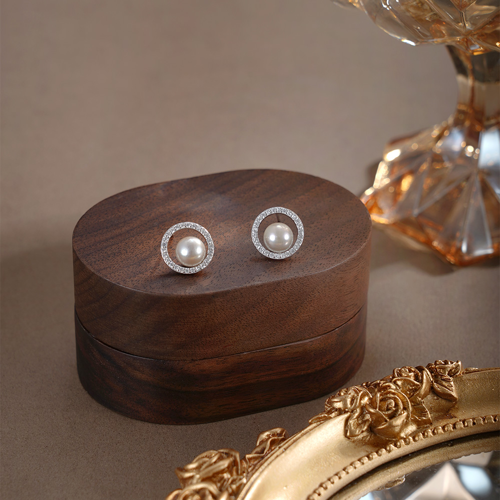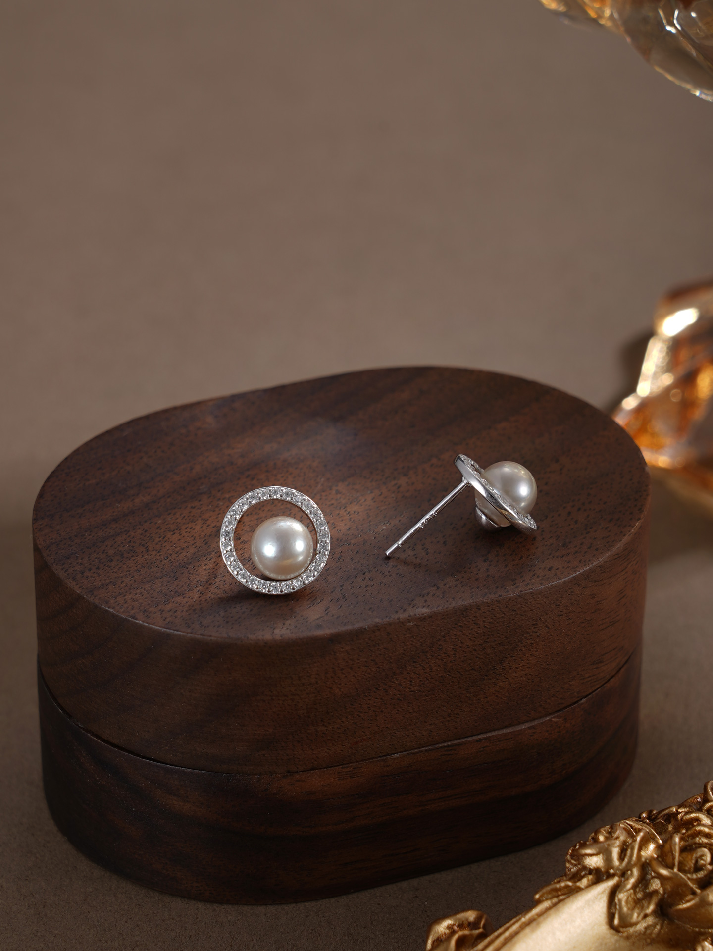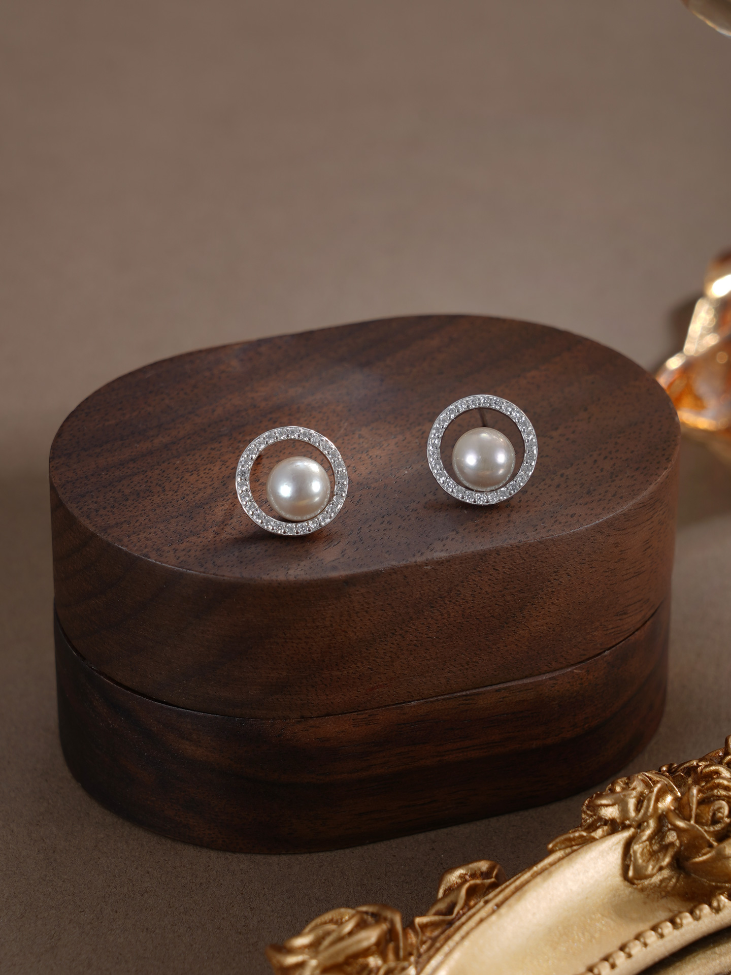 子佩集【月沉相逢】银S925珍珠惜王妃耳钉【MZEH004】6.5mm珠圆环灰珠2601