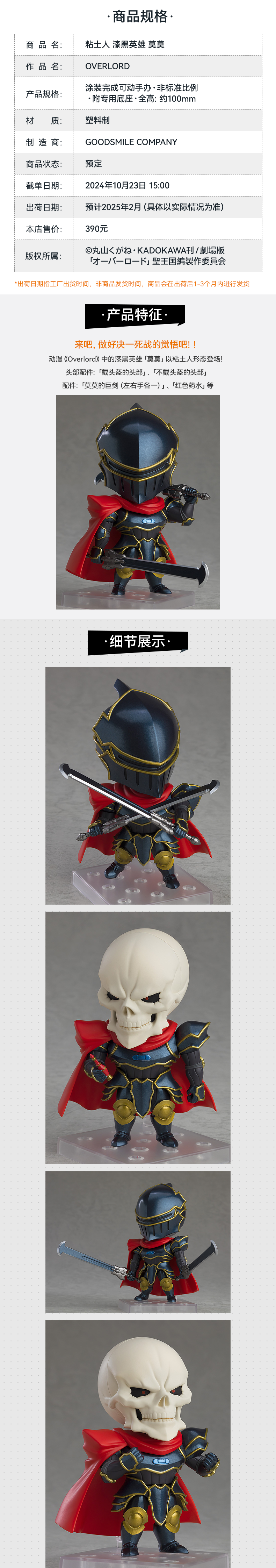 【GSC现货】粘土人 漆黑英雄 莫莫 OVERLORD 手办模玩