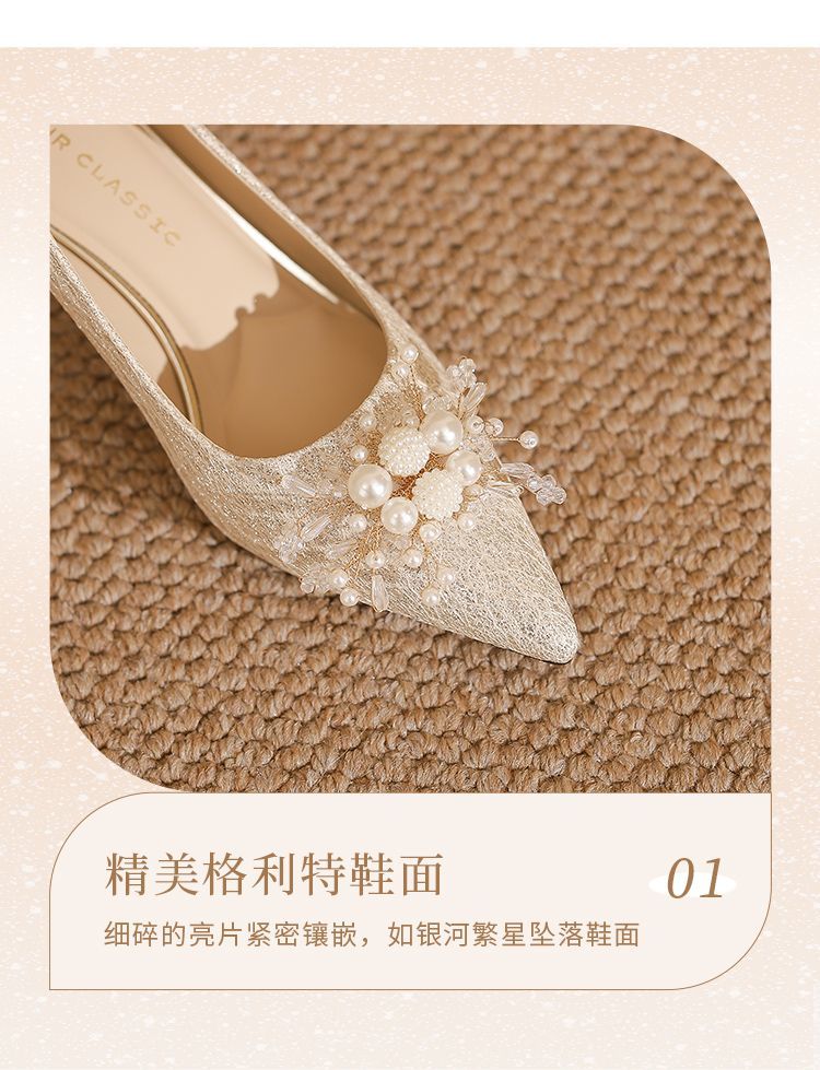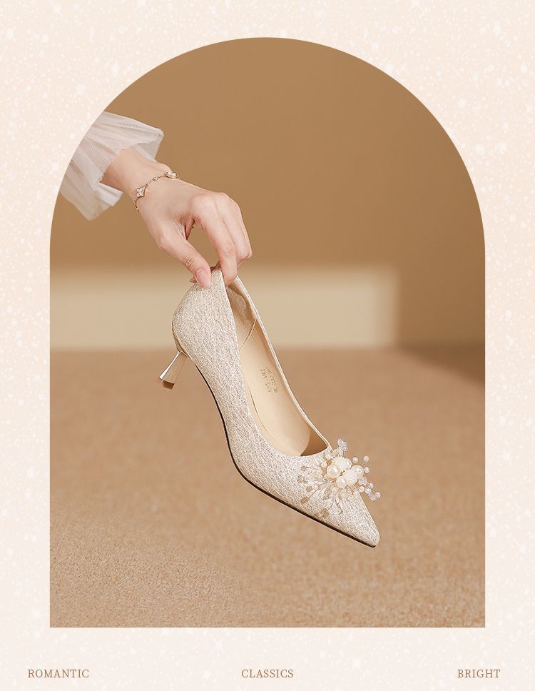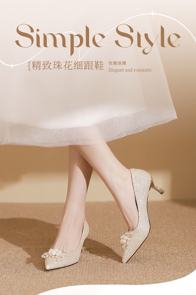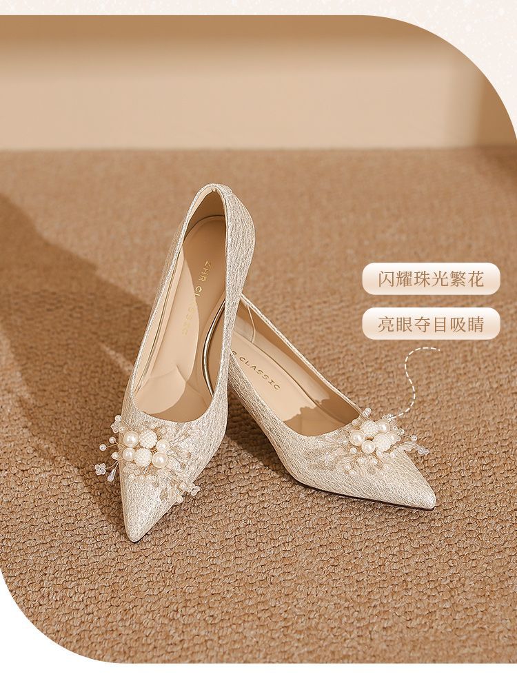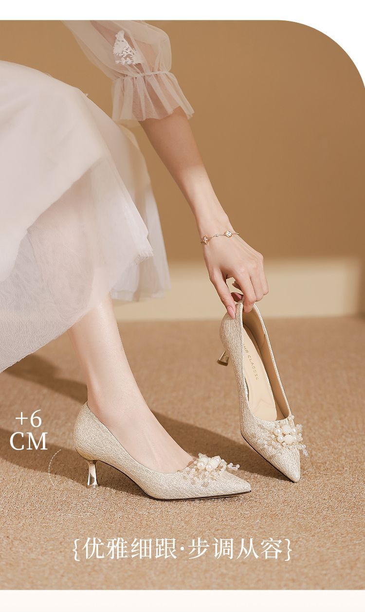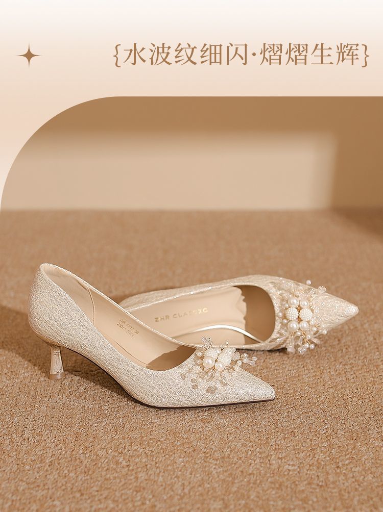 ZHR则则法式气质婚鞋女鞋2026新款6cm增高珠花高跟鞋结婚宴会伴娘