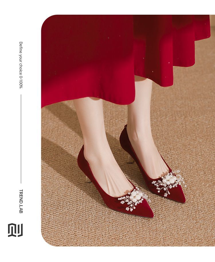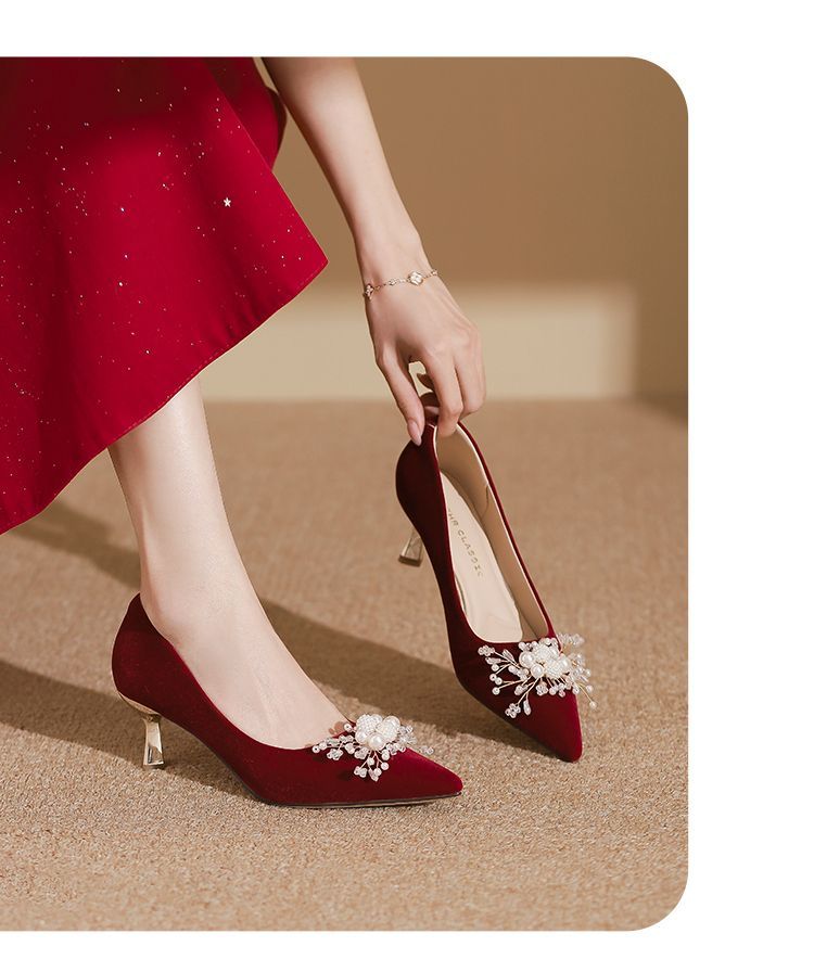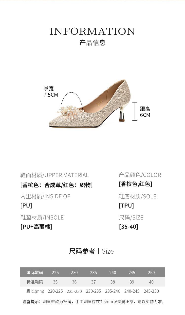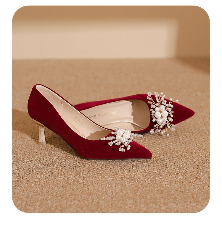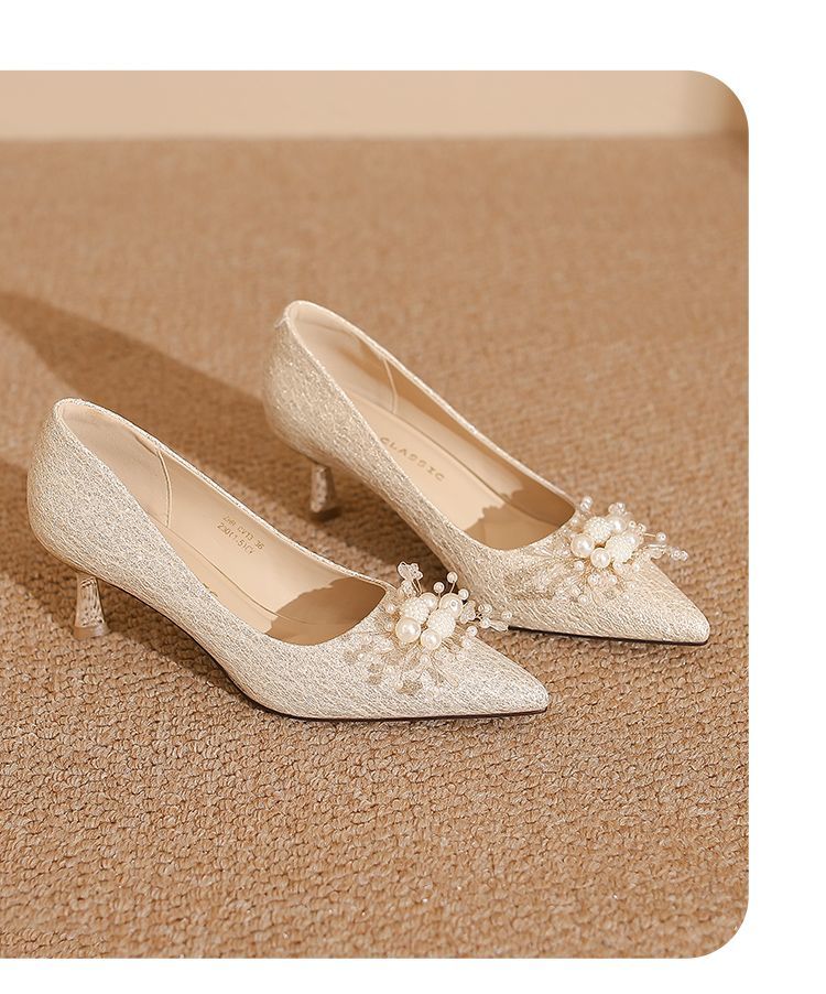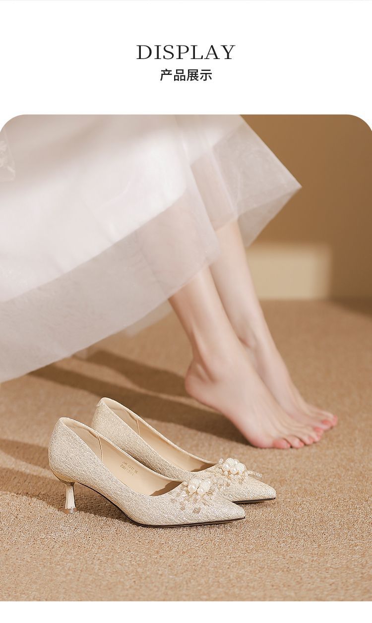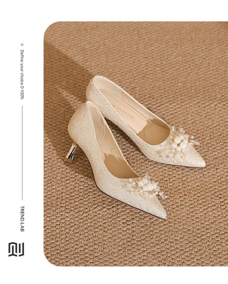 ZHR则则法式气质婚鞋女鞋2026新款6cm增高珠花高跟鞋结婚宴会伴娘
