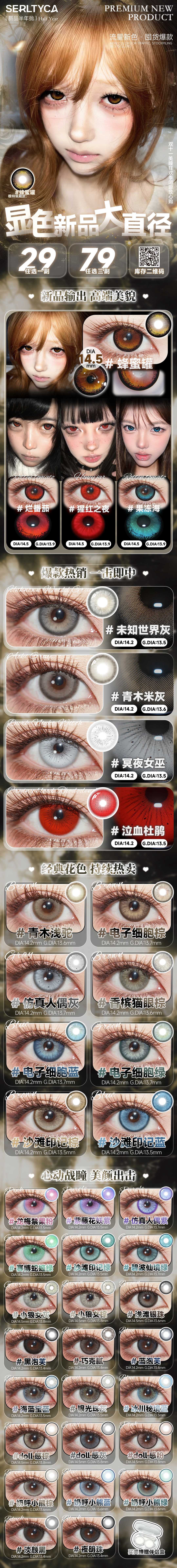 Serltyca半年抛活动·29¥/副 79¥/三副·青木米灰&青木浅驼&夜明珠&黑泡芙&蓝泡芙&奶呼小熊&未知世界灰&龙梅禁果粉&紫藤花妖紫&赛博蛇姬绿&仿真人偶紫&电子细胞&沙滩印记&碧波仙境 等