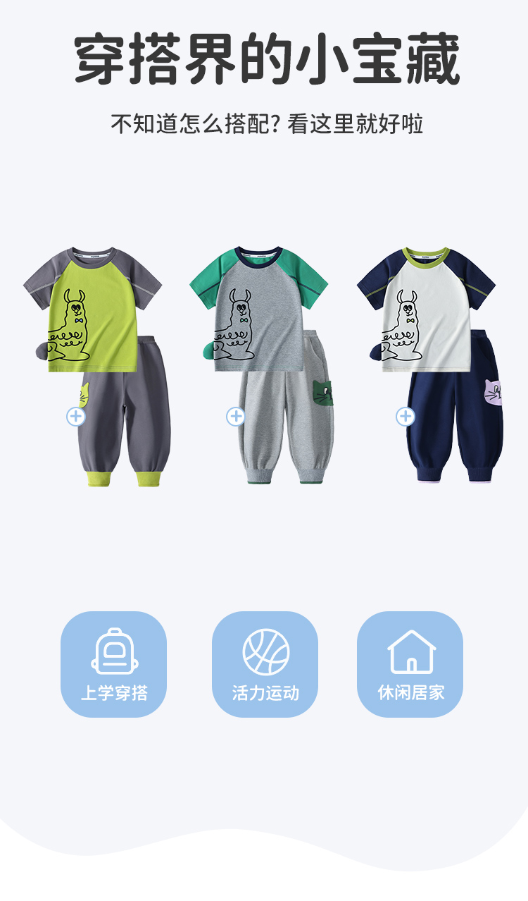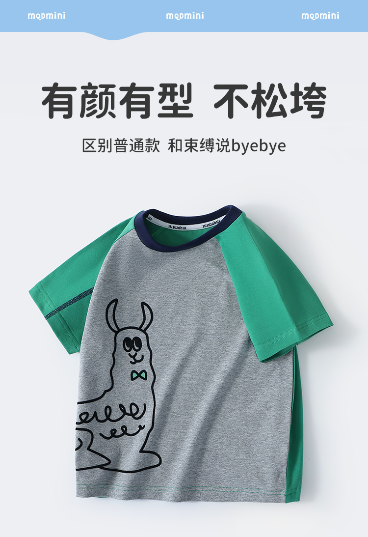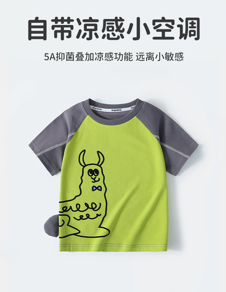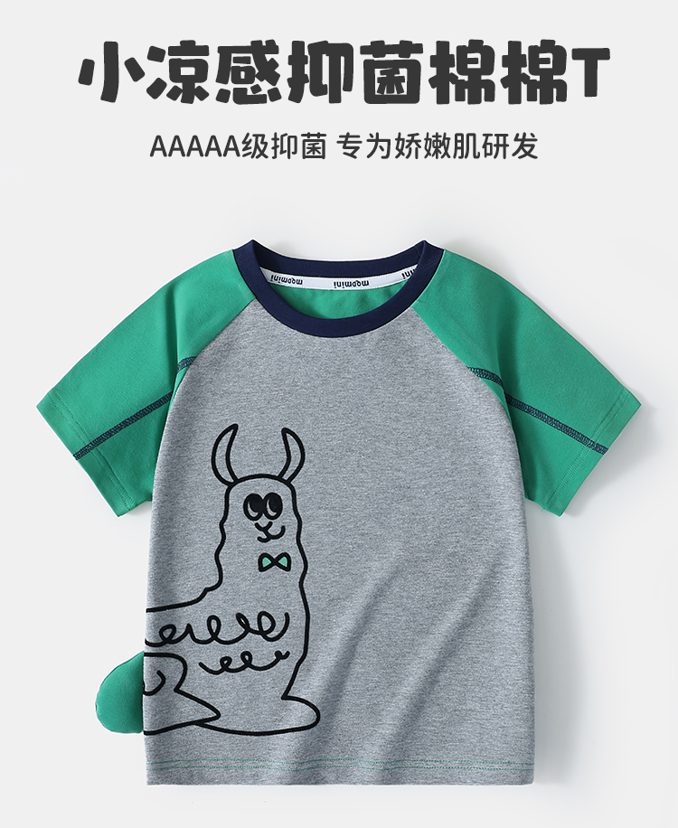 【冰冰棉】【90-140】男童夏款插肩袖印花凉感短袖t恤