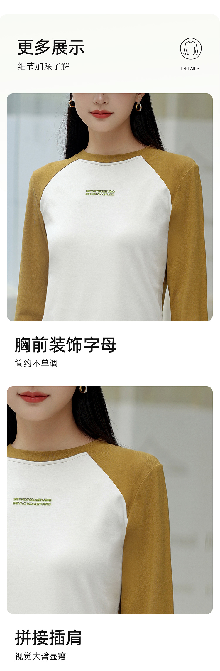 新款撞色插肩长袖t恤女款美式上衣宽松薄款早秋打底衫SZ2692