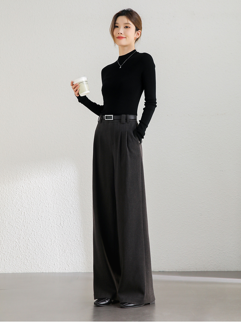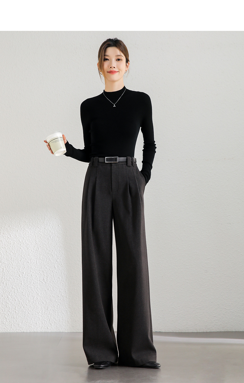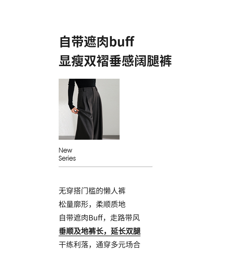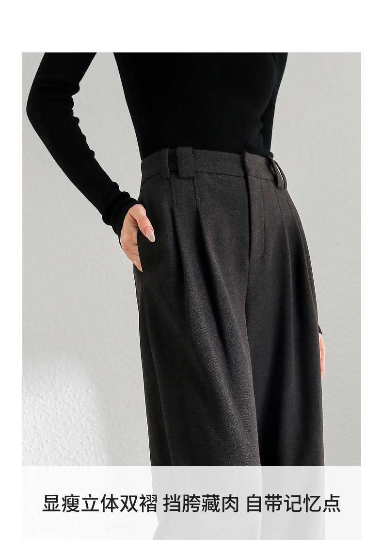 【内购】简约通勤橡筋后腰显瘦立体双褶弹力宽松A型阔腿裤-144k56333