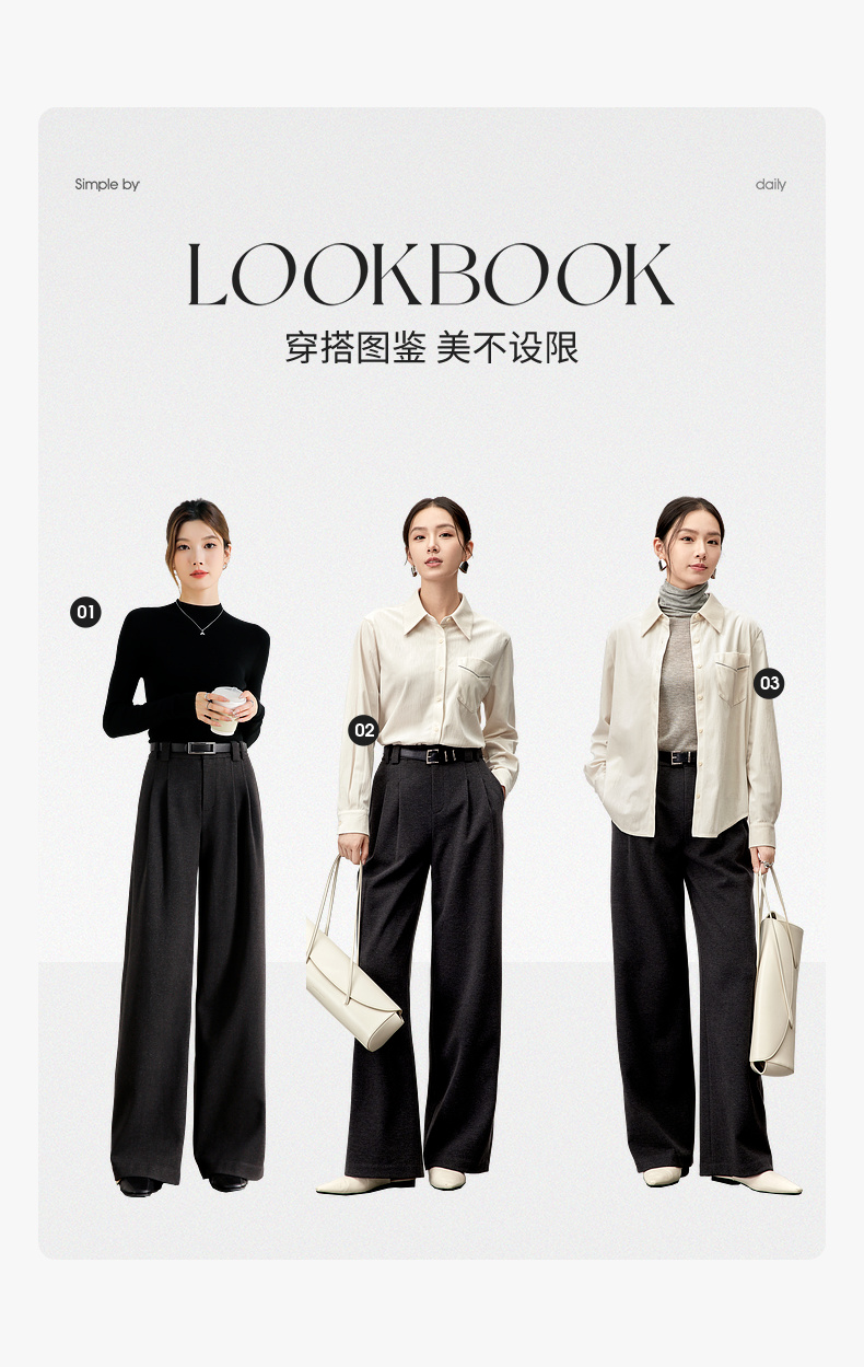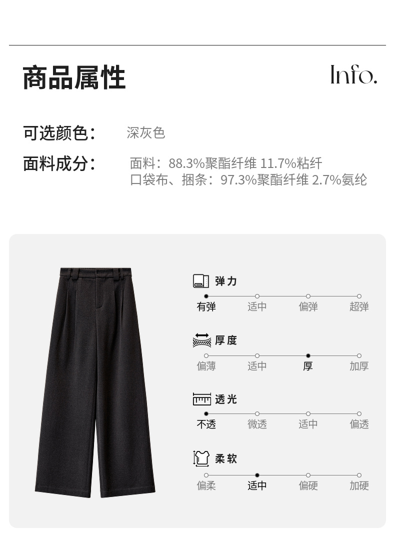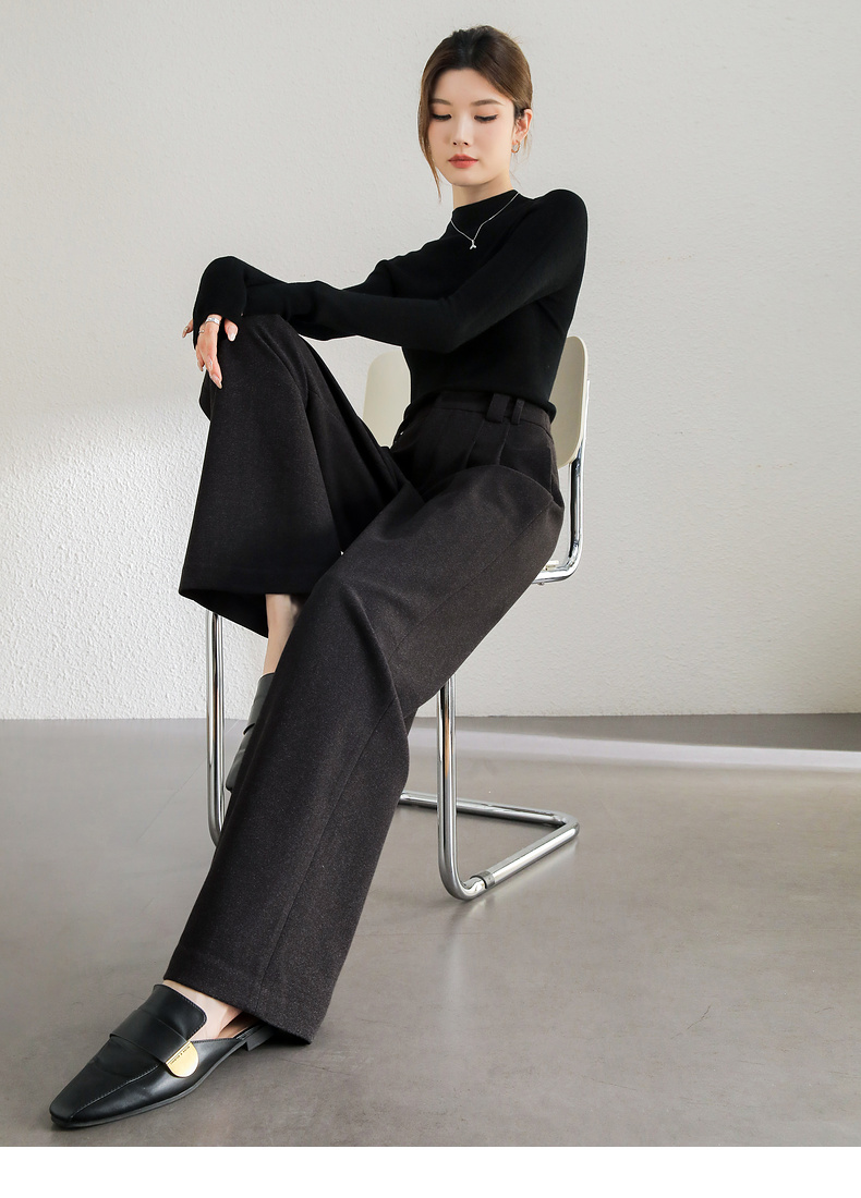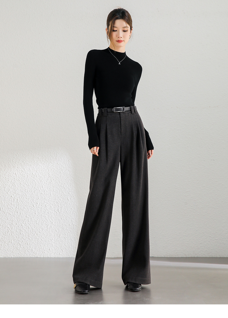 【内购】简约通勤橡筋后腰显瘦立体双褶弹力宽松A型阔腿裤-144k56333