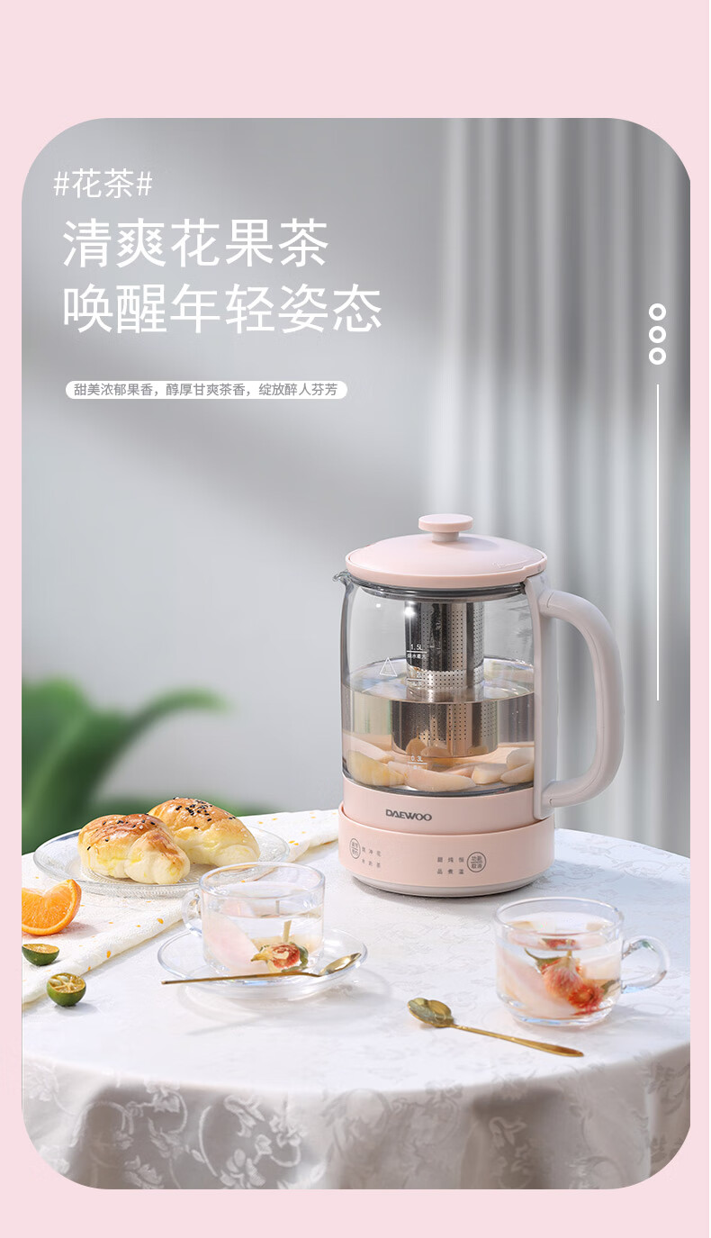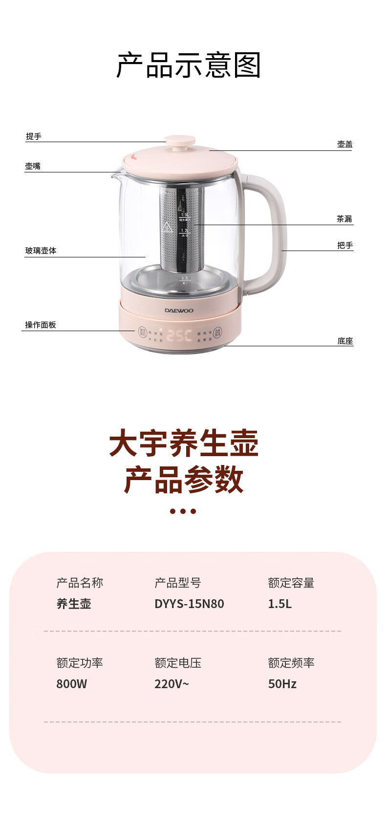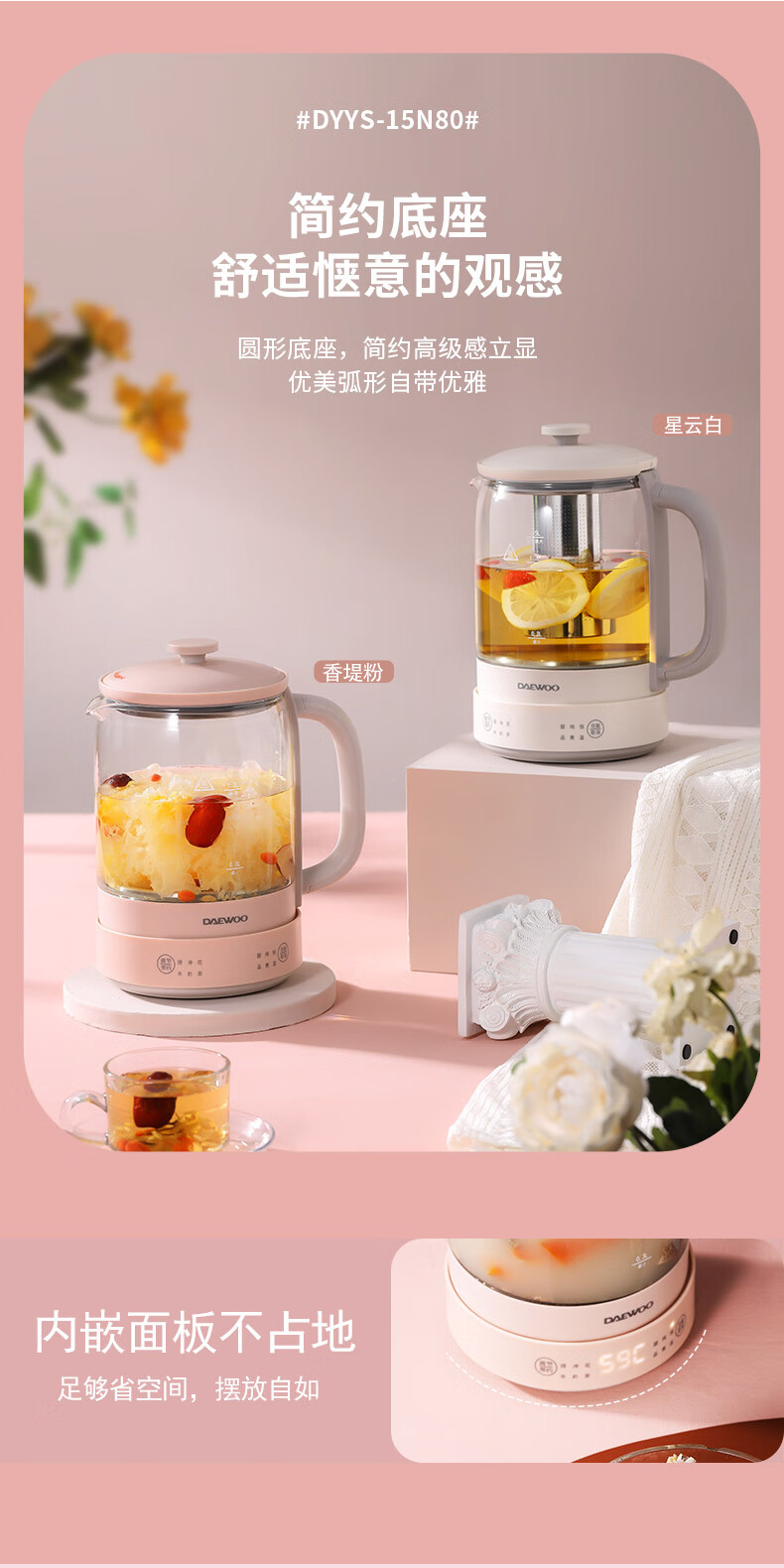 大宇(DAEWOO)养生壶恒温家用多功能1.5L烧水壶煮茶器DYYS-15N80