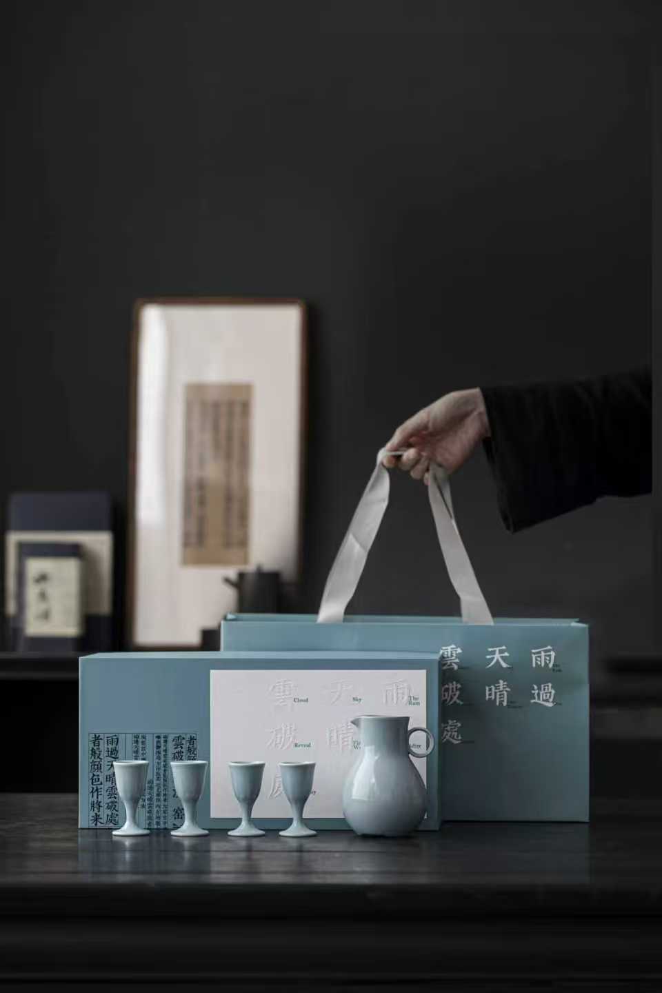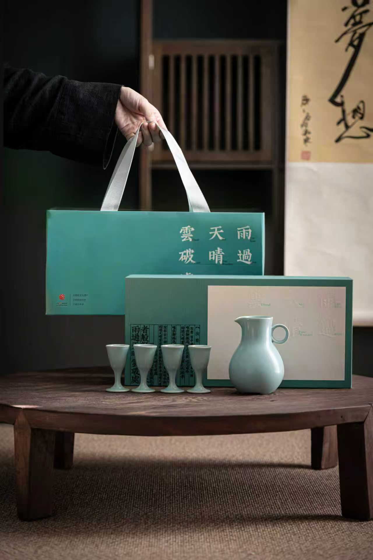 汝山明 单耳尊茅酒杯酒器套组 非遗汝瓷 汝窑分酒器 茅酒杯 送礼礼盒