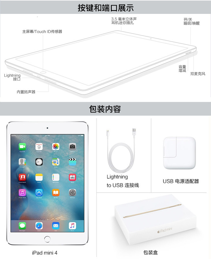 苹果ipad mini4 7.9寸平板电脑国行原封