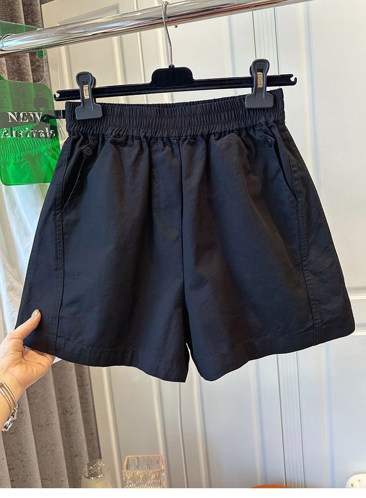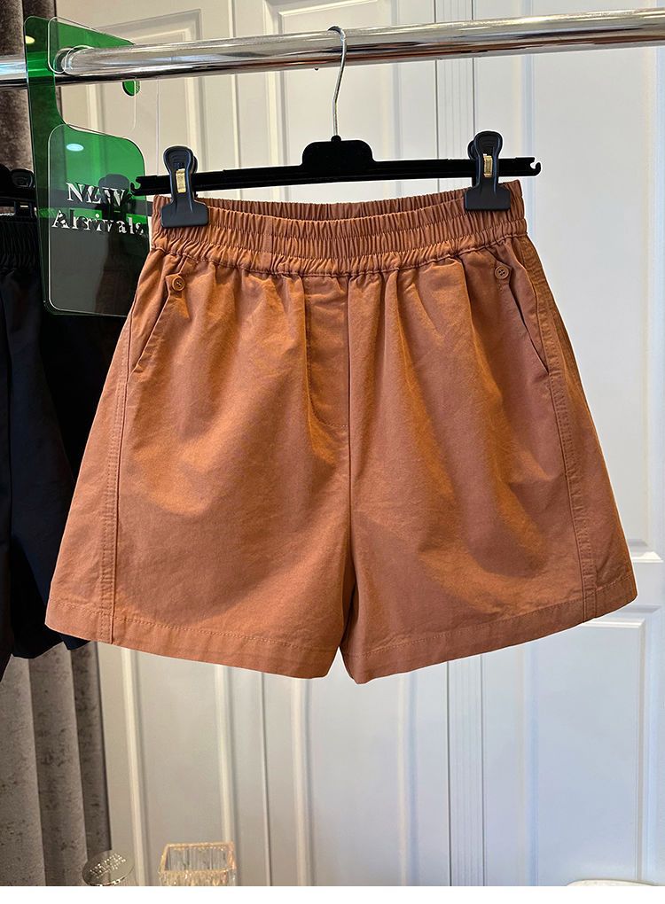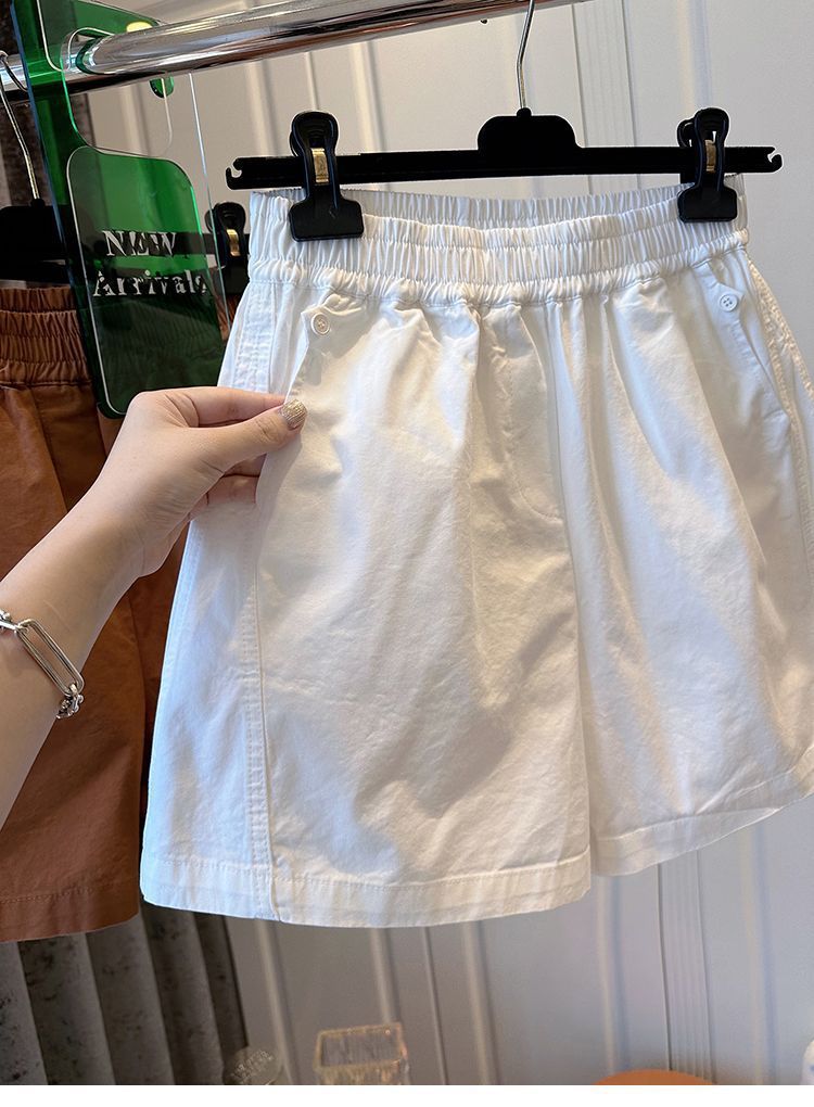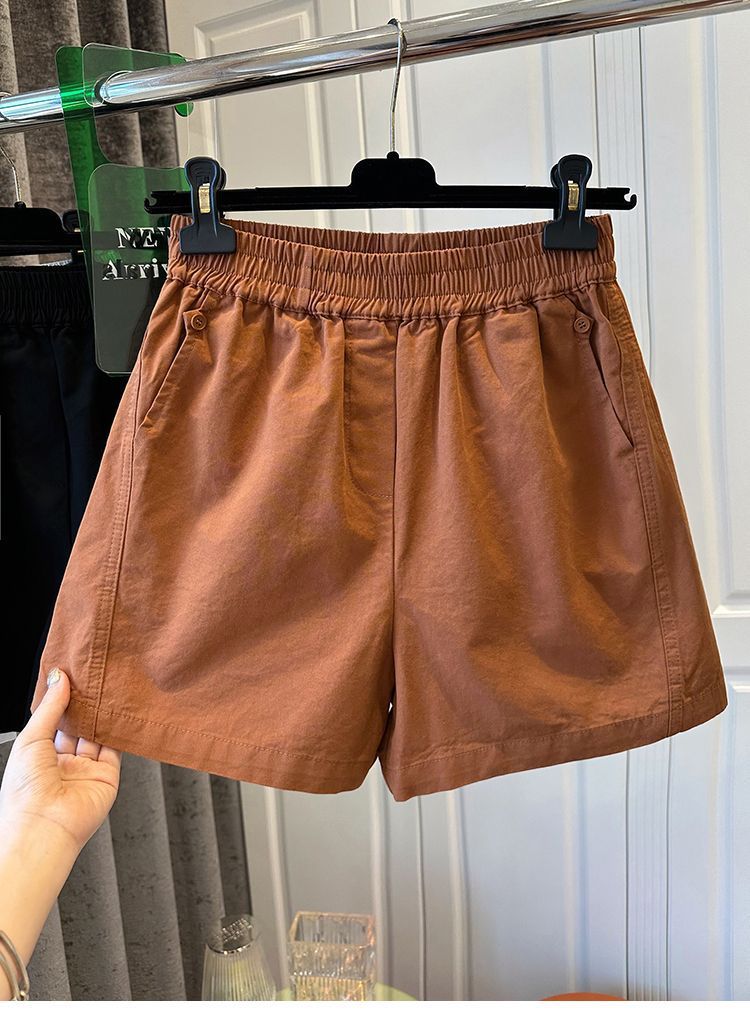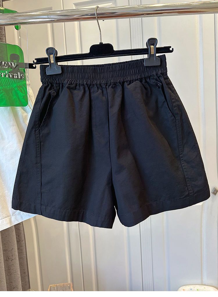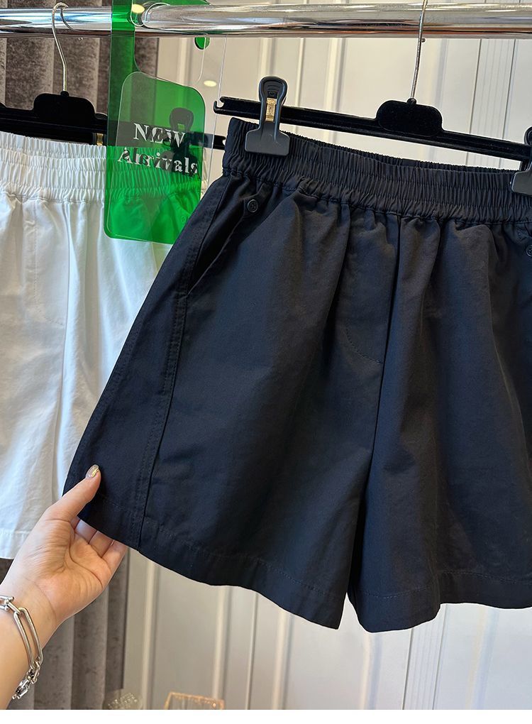 【纯棉松紧腰宽松休闲短裤】阔腿裤高腰口袋纽扣拼接 夏季新款