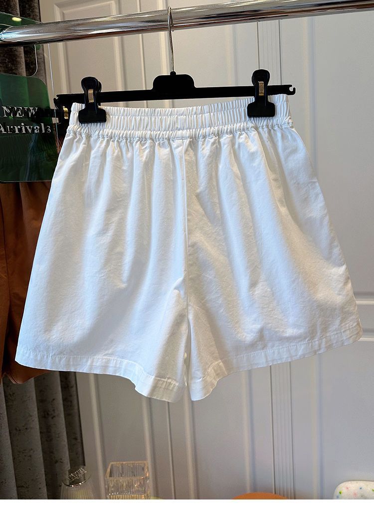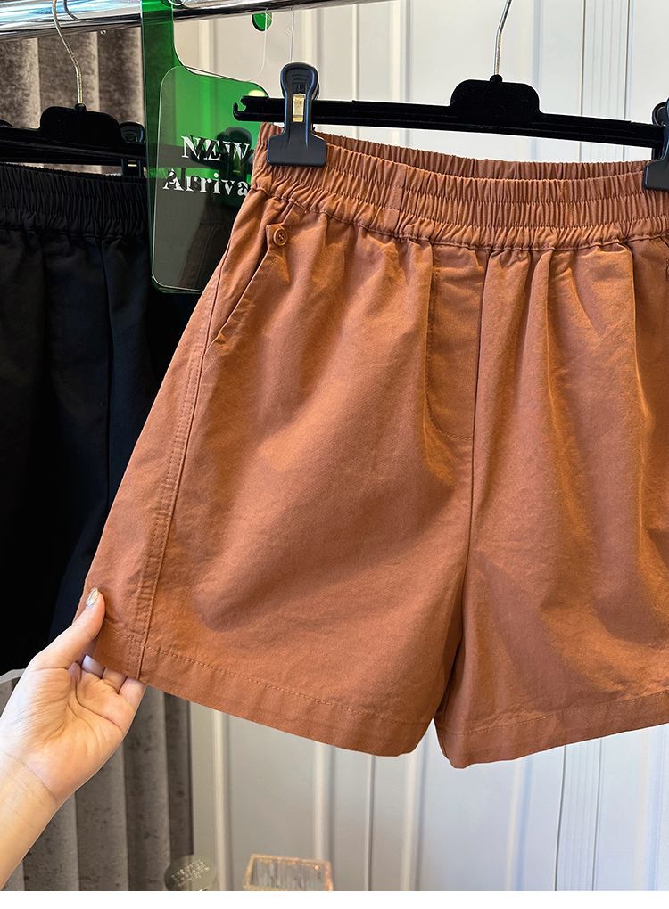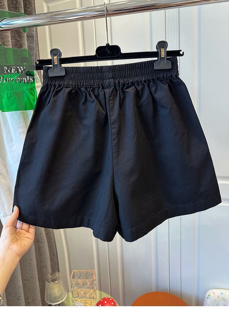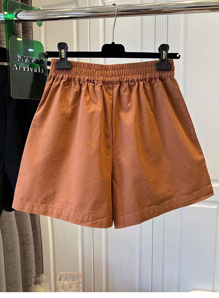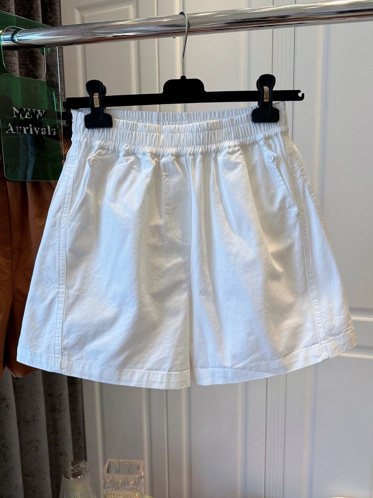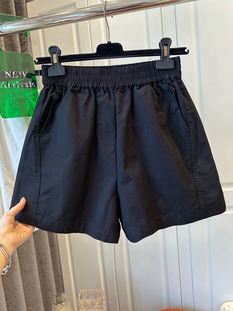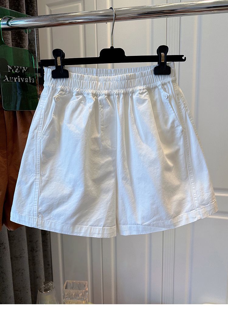【纯棉松紧腰宽松休闲短裤】阔腿裤高腰口袋纽扣拼接 夏季新款