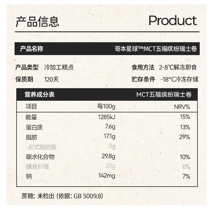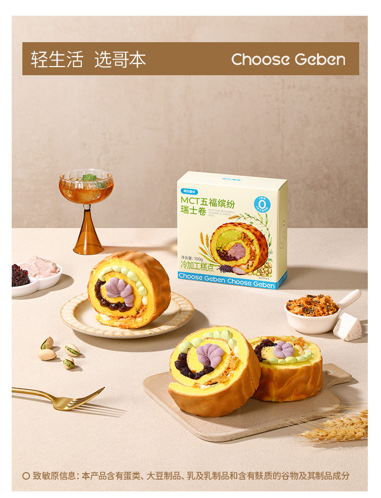 【共享分销】哥本MCT五福缤纷瑞士卷 全蛋液+多种植物配方+动物奶油+纯牛奶 层层好料 融合多元口味 松软绵密 每只约100g