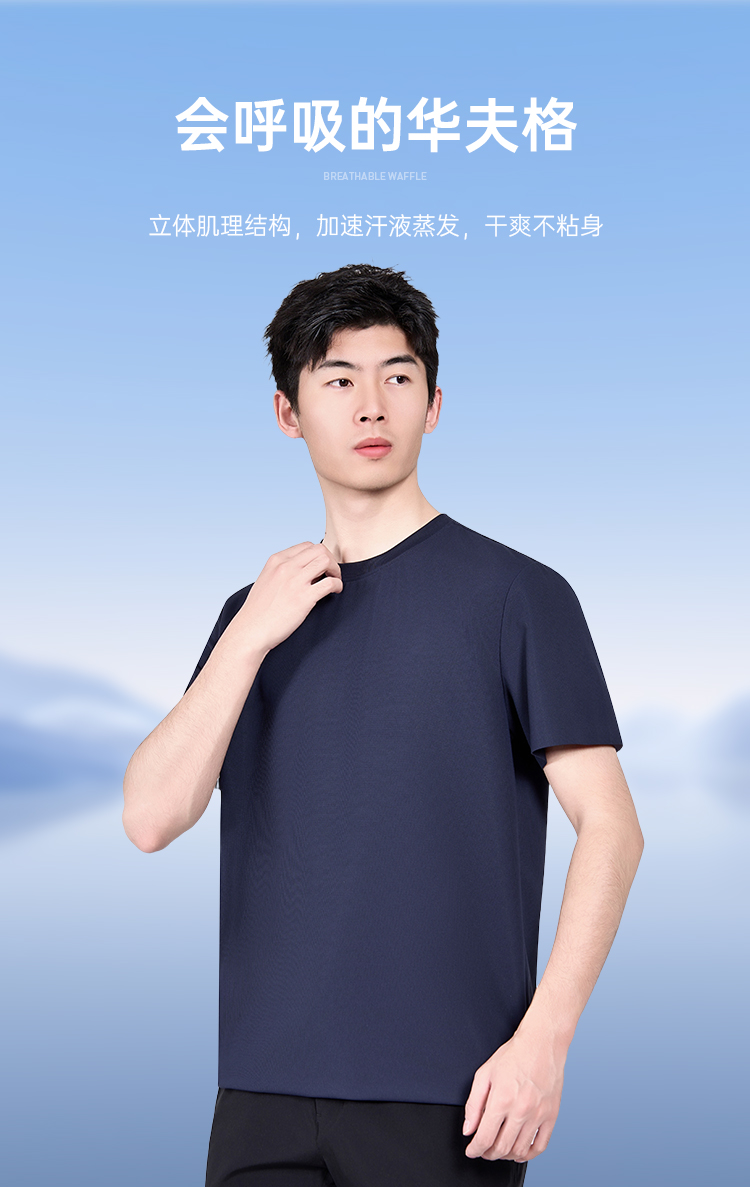 【冰刻华夫格短袖T恤】训练运动圆领短袖 干爽透气休闲半袖T恤TZ604