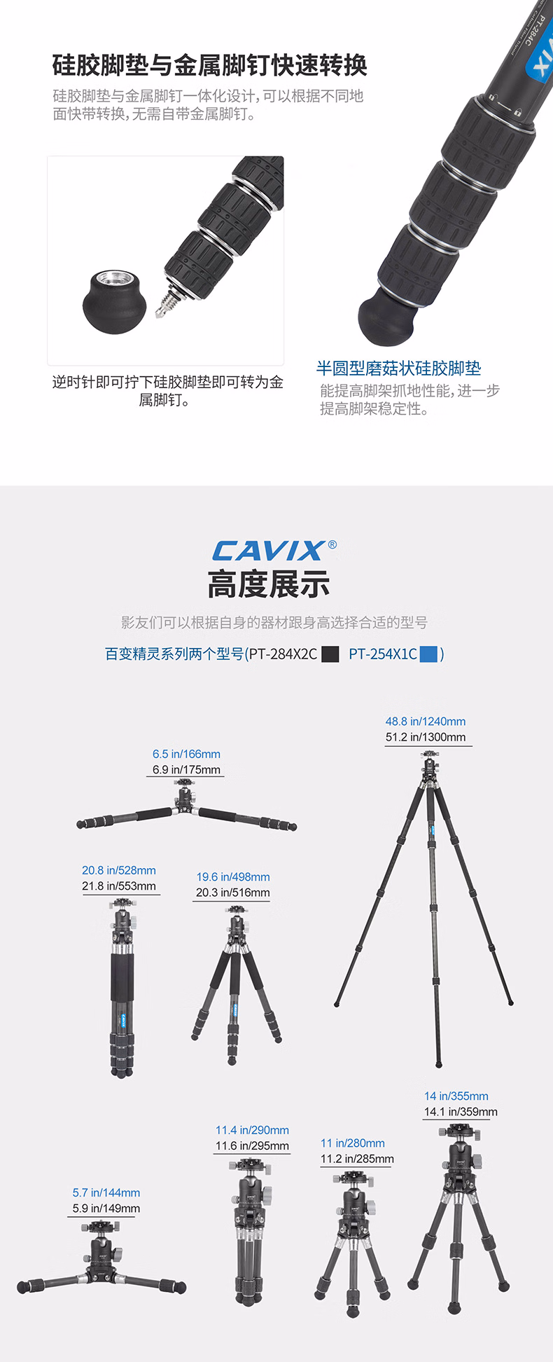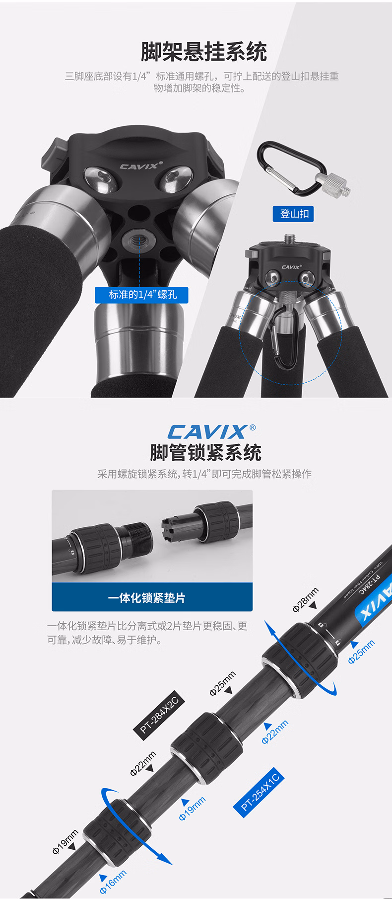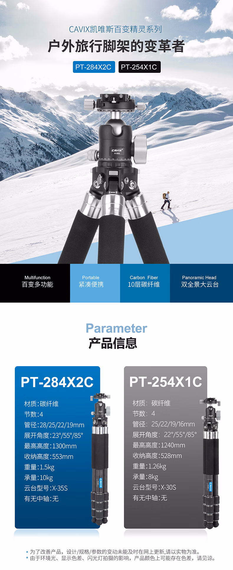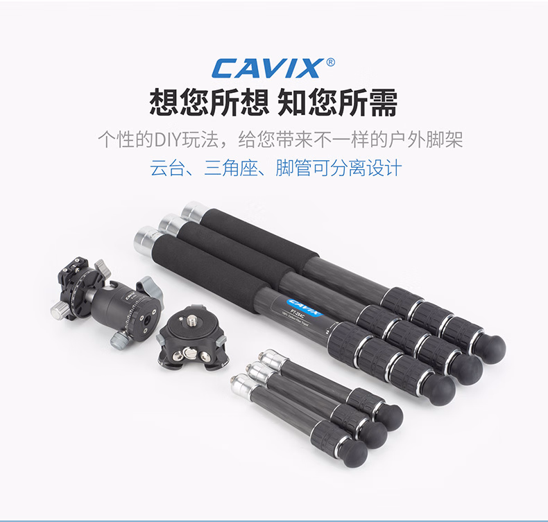 CAVIX凯唯斯 PT254X1C/ PT284X1C百变精灵球台便携无中轴摄影摄像碳纤维可拆三脚架