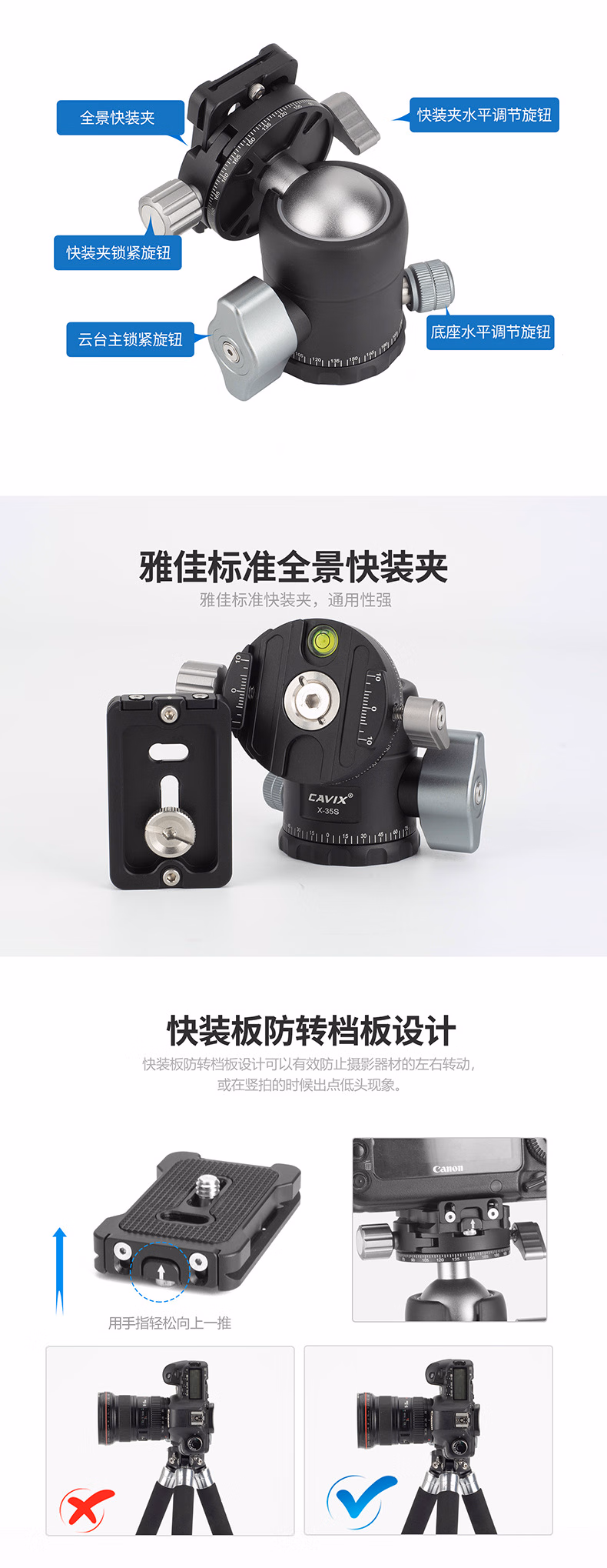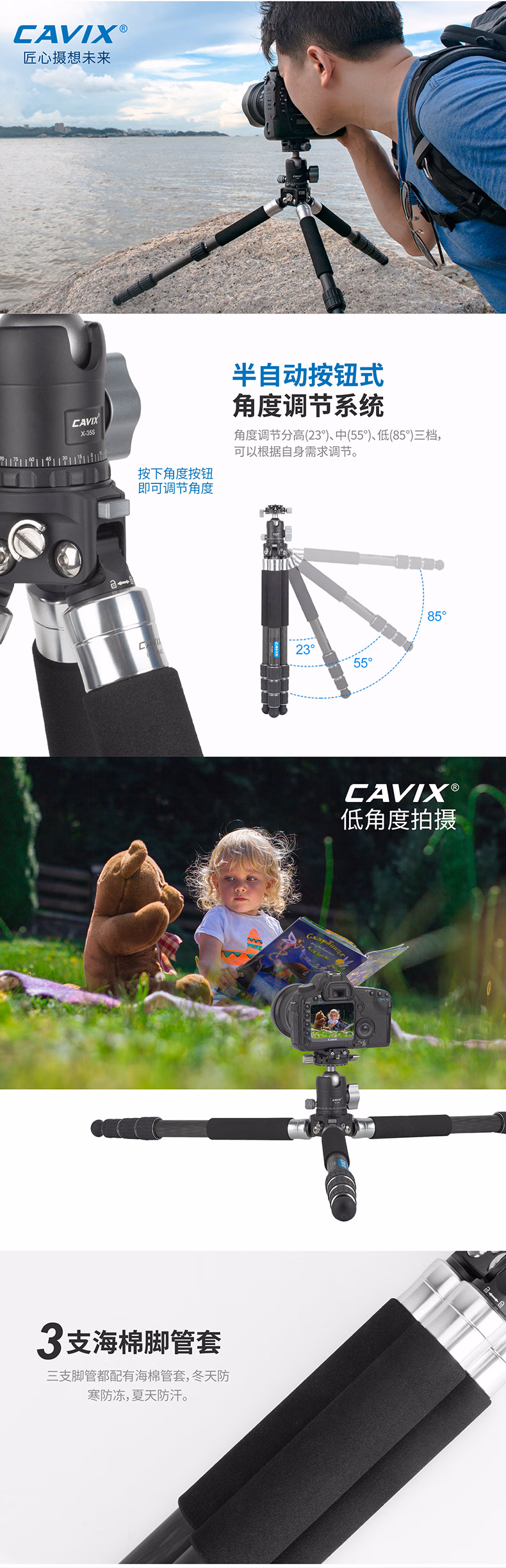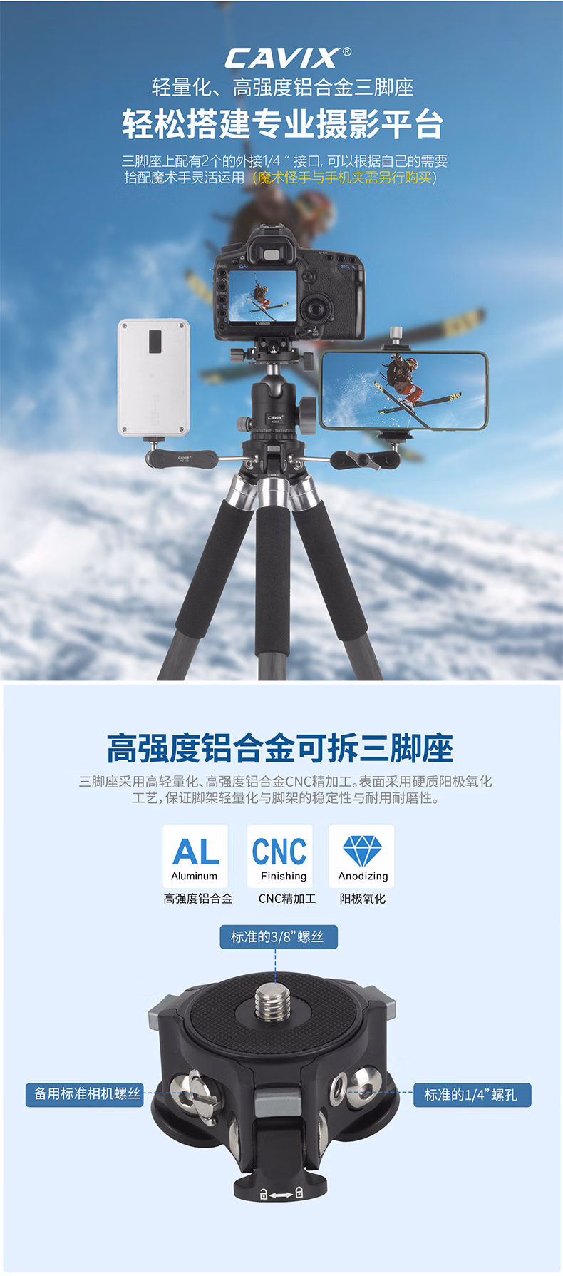 CAVIX凯唯斯 PT254X1C/ PT284X1C百变精灵球台便携无中轴摄影摄像碳纤维可拆三脚架